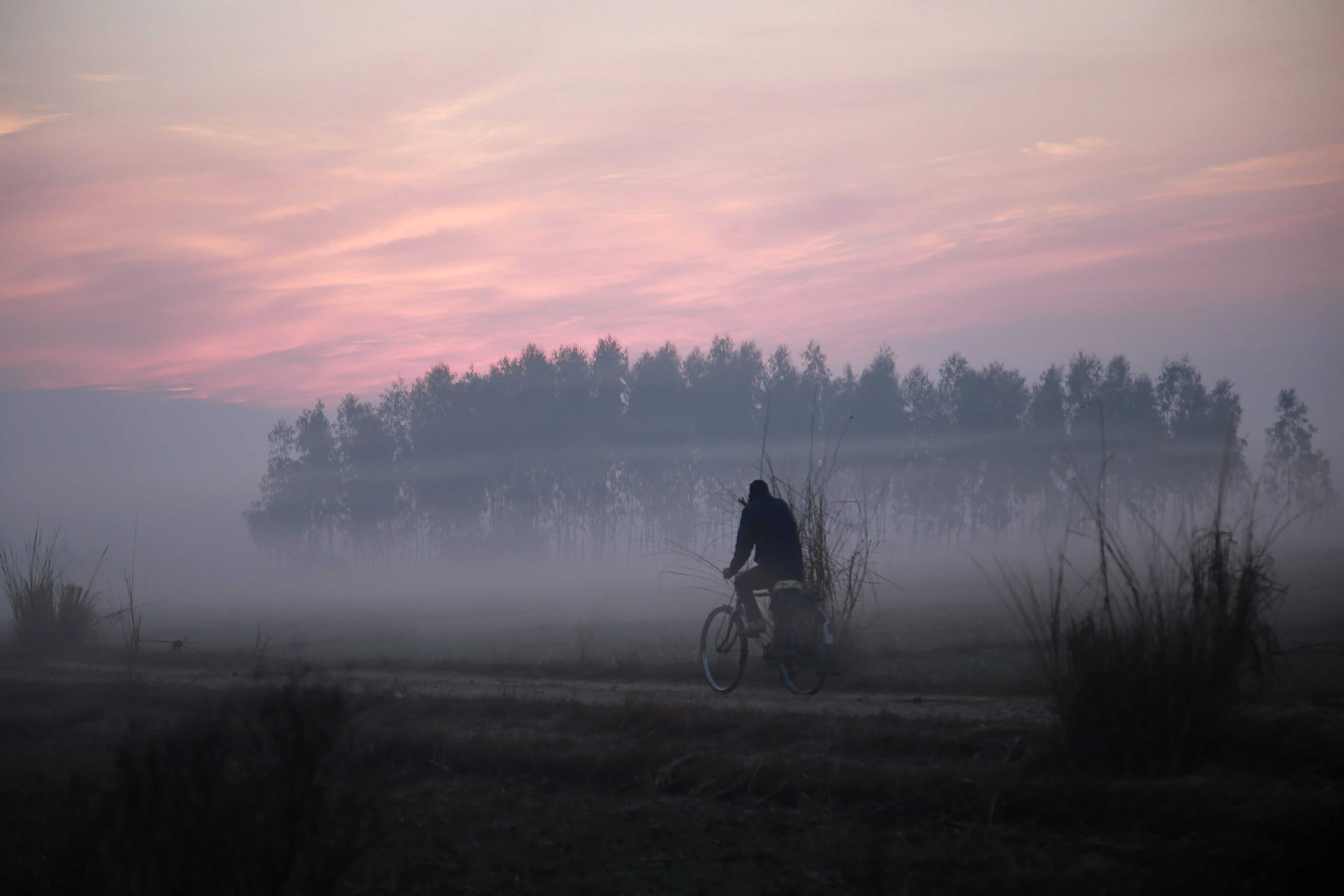 A commuter cycles amid thick fog on a cold, winter morning, in Jammu (Source: PTI)