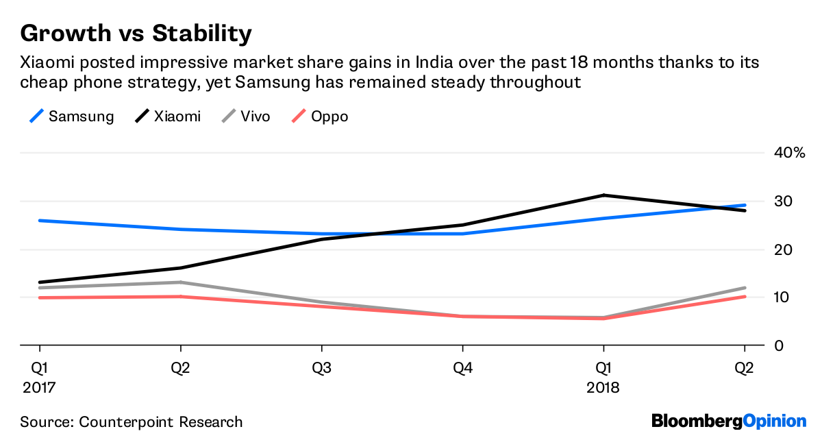 Read more of Tim Culpan's analysis on why the India slowdown should be a concern for Xiaomi investors.