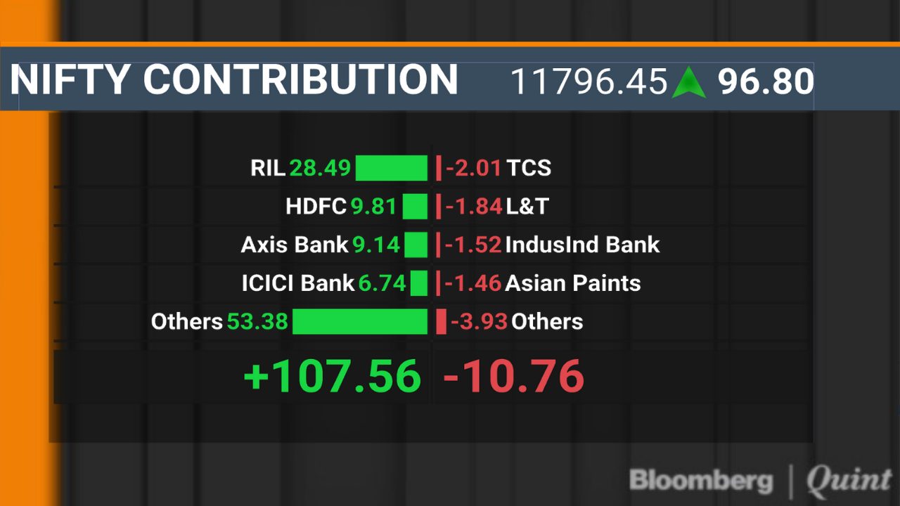 - The NSE Nifty 50 ended slightly below 11,800, up 0.83 percent.