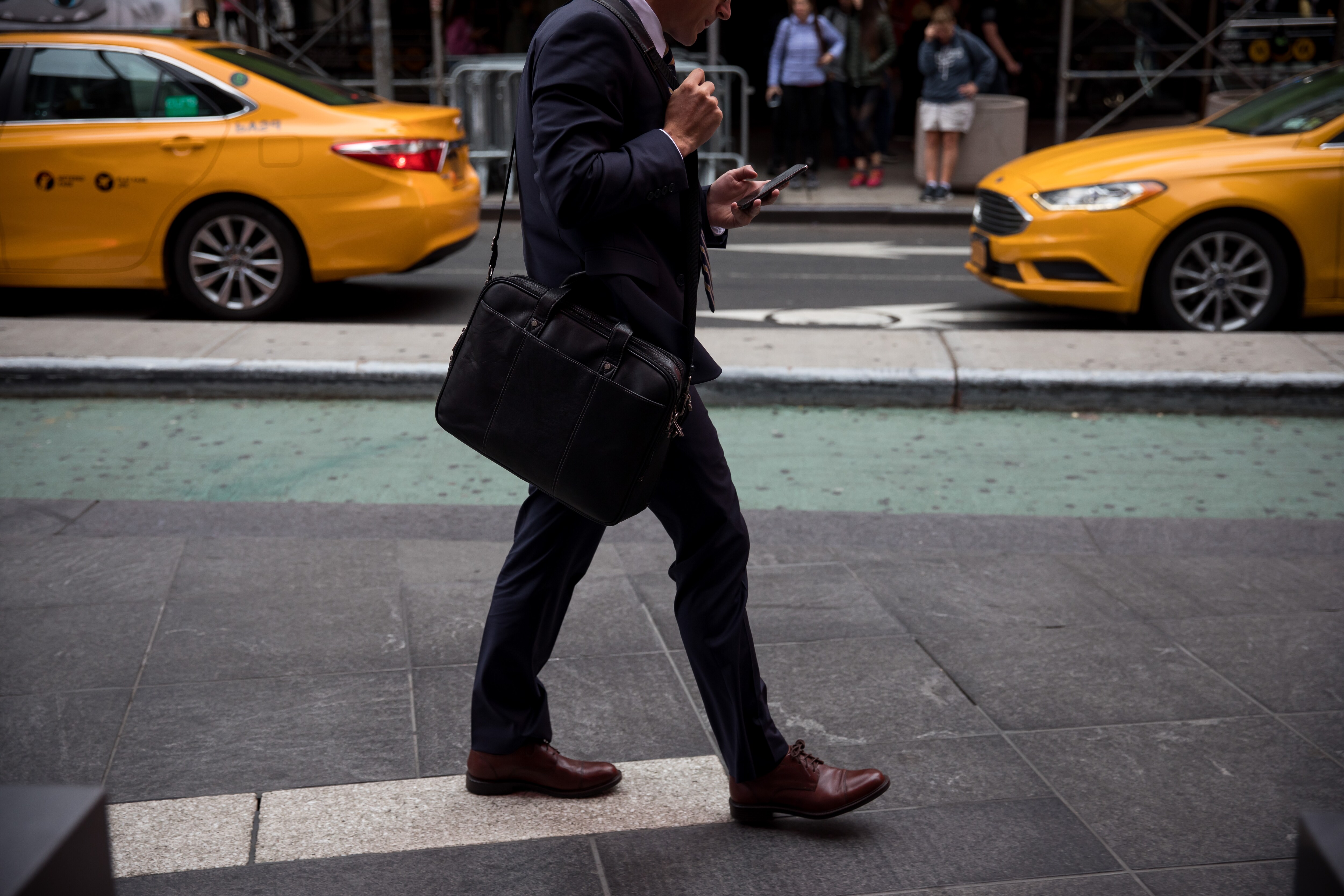 A pedestrian views a mobile device (Photographer: Michael Nagle/Bloomberg)