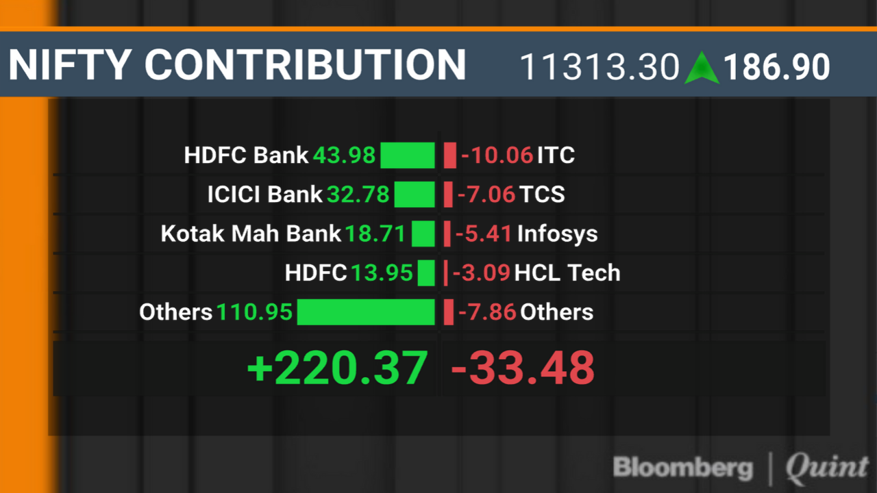- The NSE Nifty 50 rose 1.68 percent to end at 11,313.