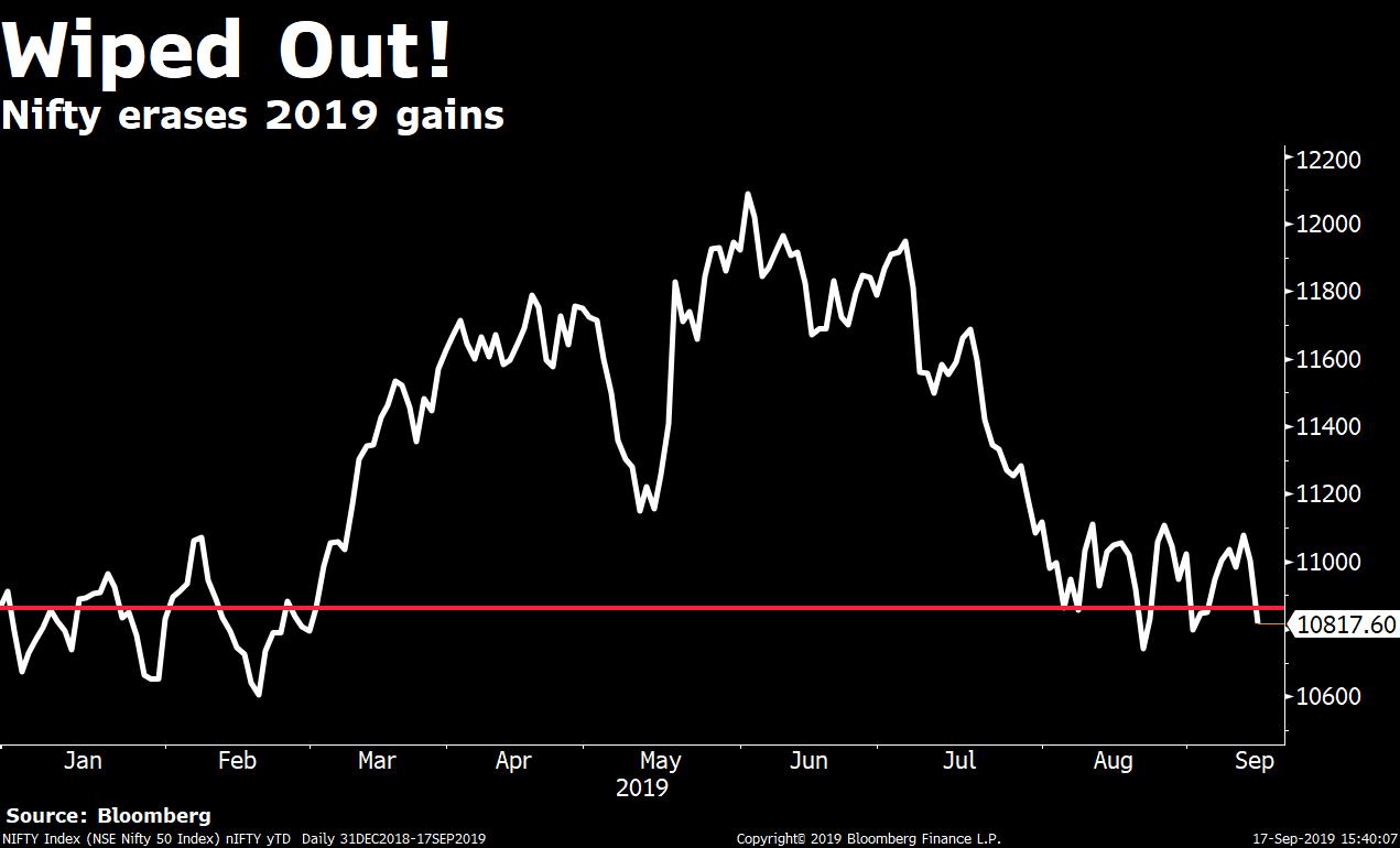 1. Spooked Investors Wipe Out Nifty's 2019 Gains