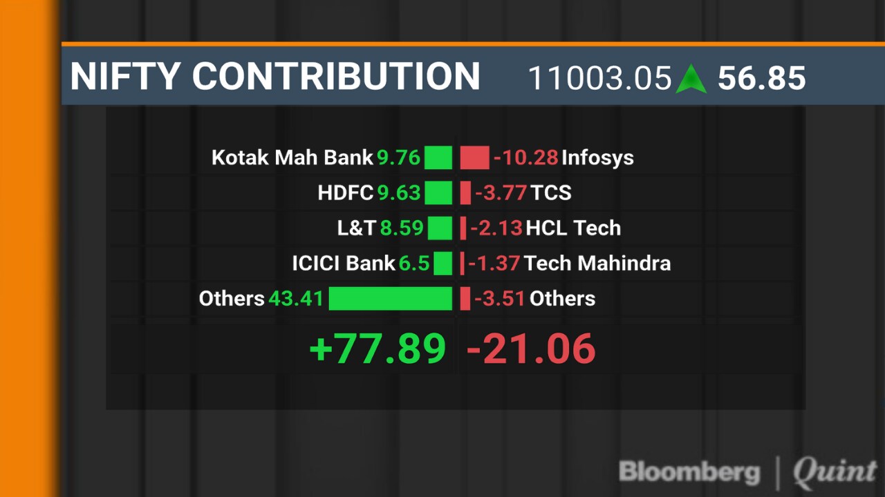 - Nifty ended 0.52 percent higher to close above the 11,00-mark for the first time since Aug. 30.