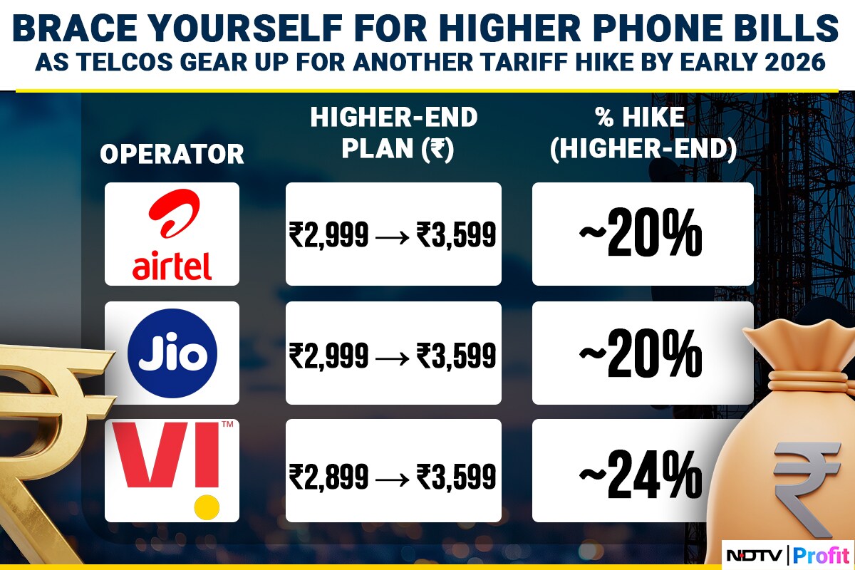 - Indian telecom operators may increase tariffs between October 2025 and January 2026
