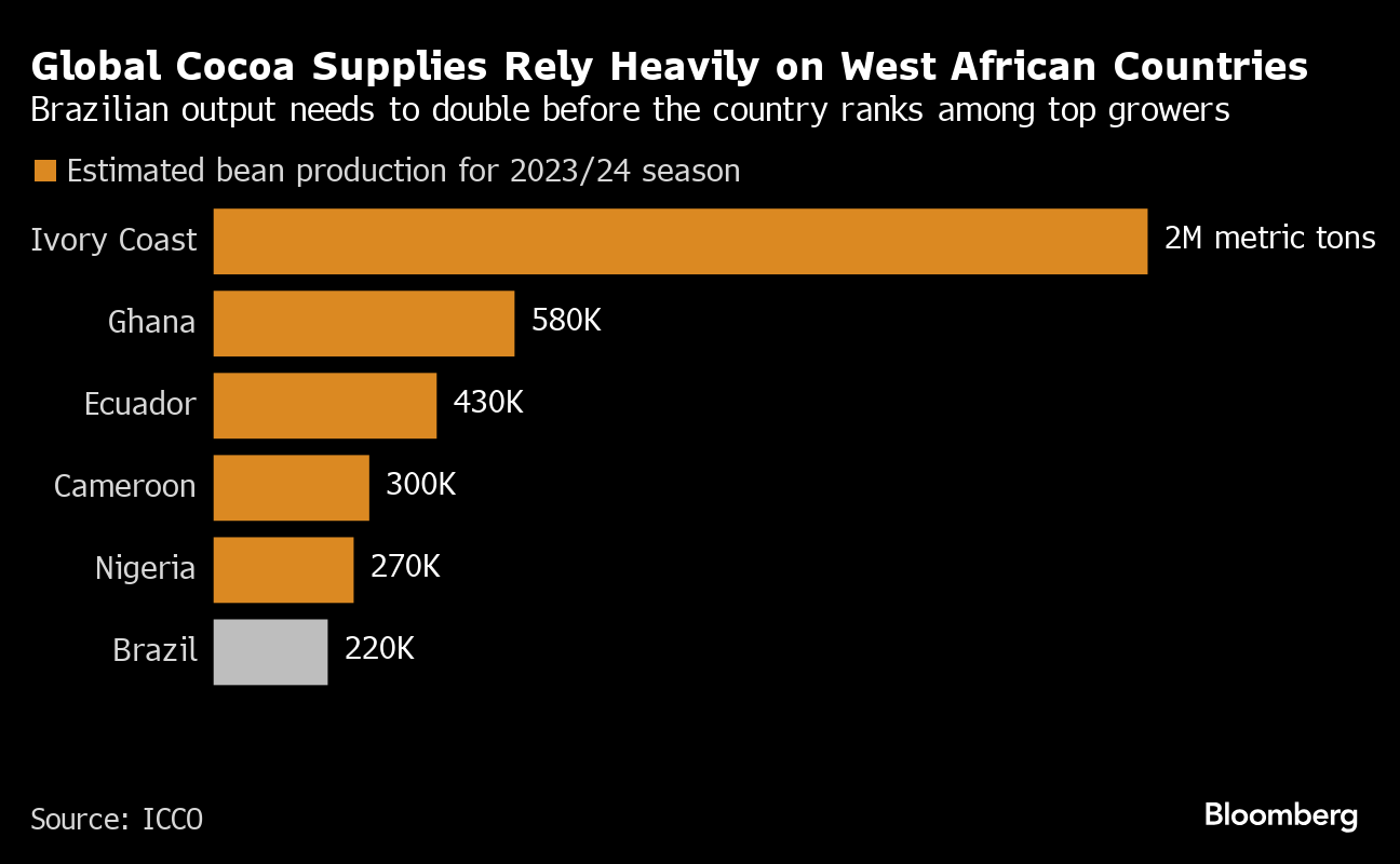 “The production model in Africa tends to run out of steam over time, and that creates possibilities for other regions,” said Laerte Moraes, a managing director for Cargill Inc.'s South American food ingredients unit. “Brazil has all the conditions to be a very efficient and effective cocoa producer.”