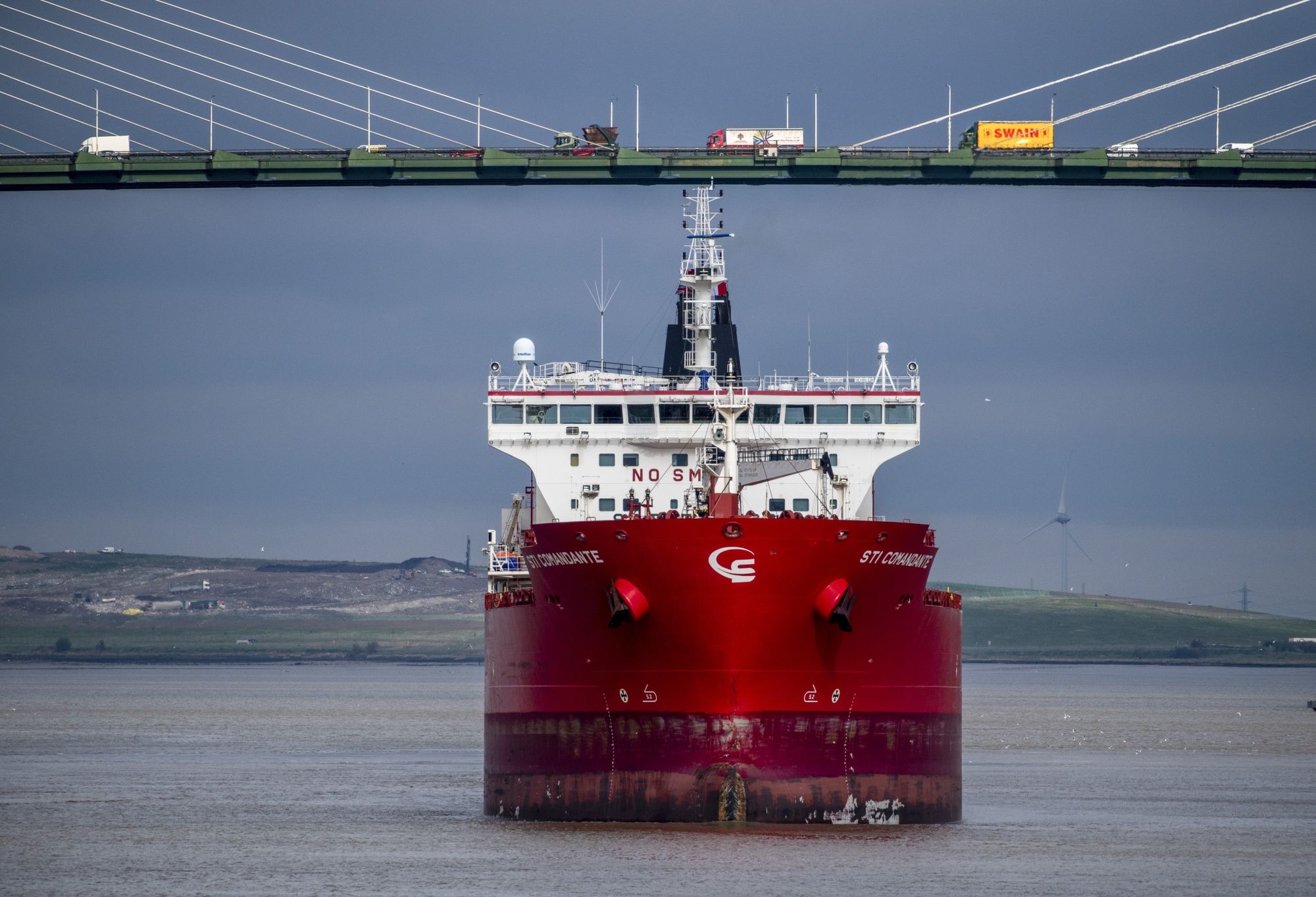 The STI Comandante tanker after delivering a shipment of Russian diesel in Purfleet, U.K., in April. Photographer: Chris J. Ratcliffe/Bloomberg