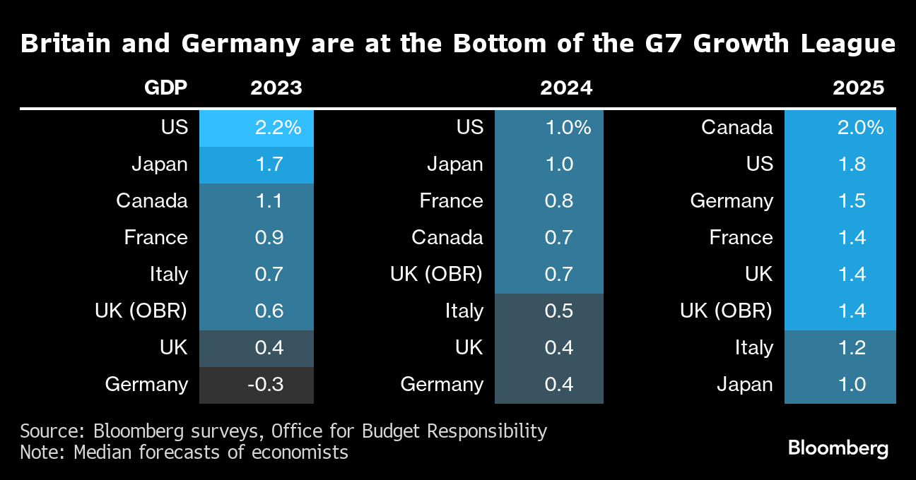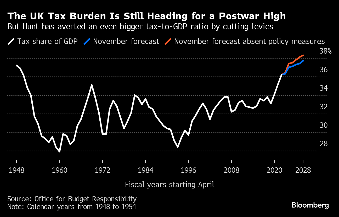 “Jeremy Hunt found out first hand in his Autumn Statement how hard it is to move the needle on the UK's subdued long-term growth trajectory. At the heart of the challenge — unlocking faster productivity gains, which have slowed to a crawl over the past 15 years. Lifting investment spending, aiding the flow of capital to where it's needed most, taking advantage of opportunities presented by artificial intelligence and opening up the economy to trade should all be part of that plan. There will need to be some tough fiscal choices along the way.”