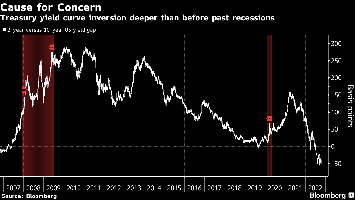 “The Fed is committed to raising rates until they see inflation coming down,” said Monica Erickson, head of investment-grade corporates at DoubleLine Capital. “And the curve, with 2s10s so inverted, is telling you that the Fed is going to push us, if not into a major slowdown, then a full-blown recession. With that you could get lower rates on the long end -- and still higher rates on the short end.”