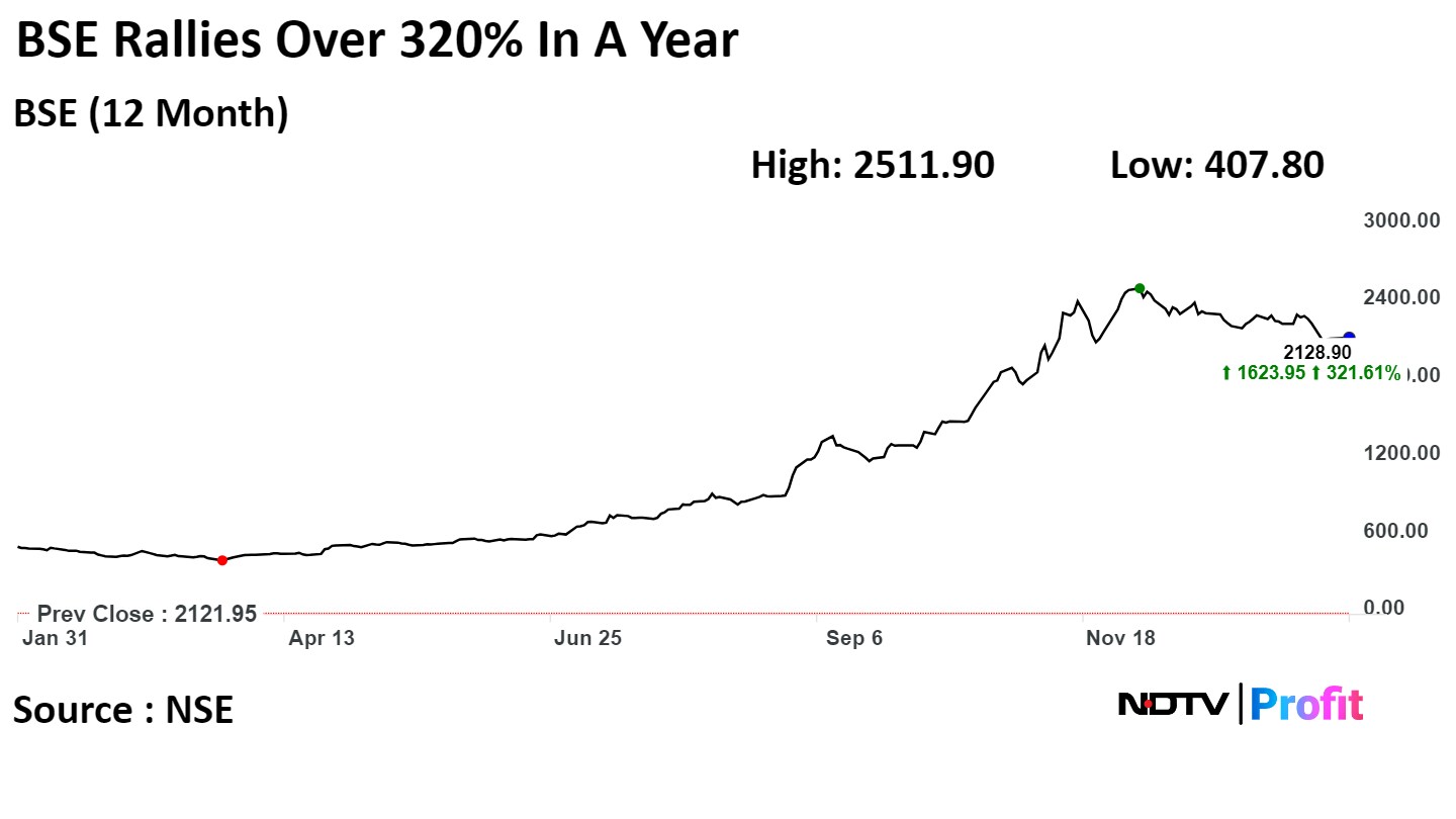 BSE has advanced over 320% in the last year, trouncing global platforms such as cryptocurrency major Coinbase Global Inc. and Cboe Global Markets Inc., as well as Multi Commodity Exchange of India Ltd.