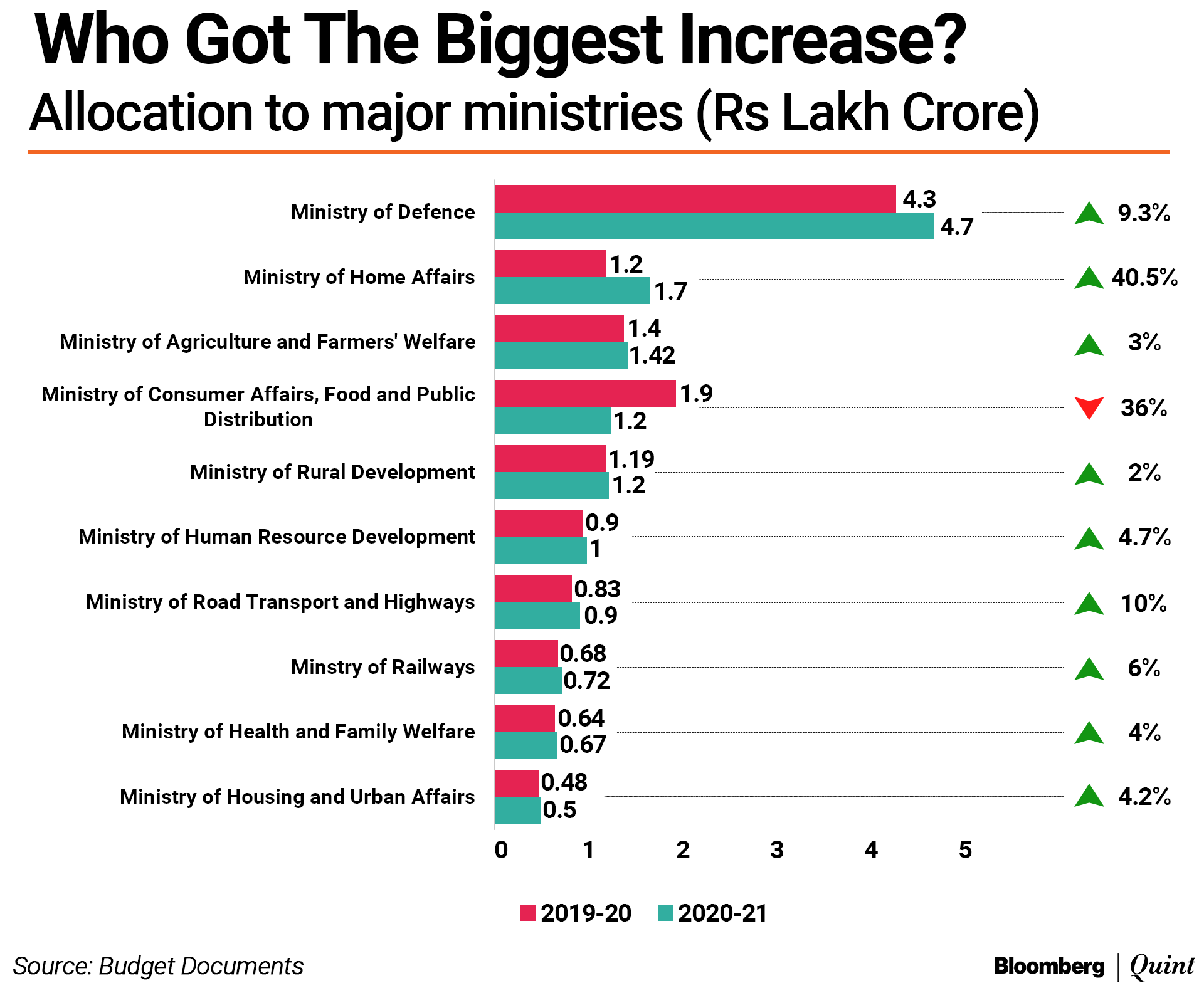 India's Ministry of Home Affairs saw the steepest rise in fund allocation in the Union Budget for the financial year 2020-21.