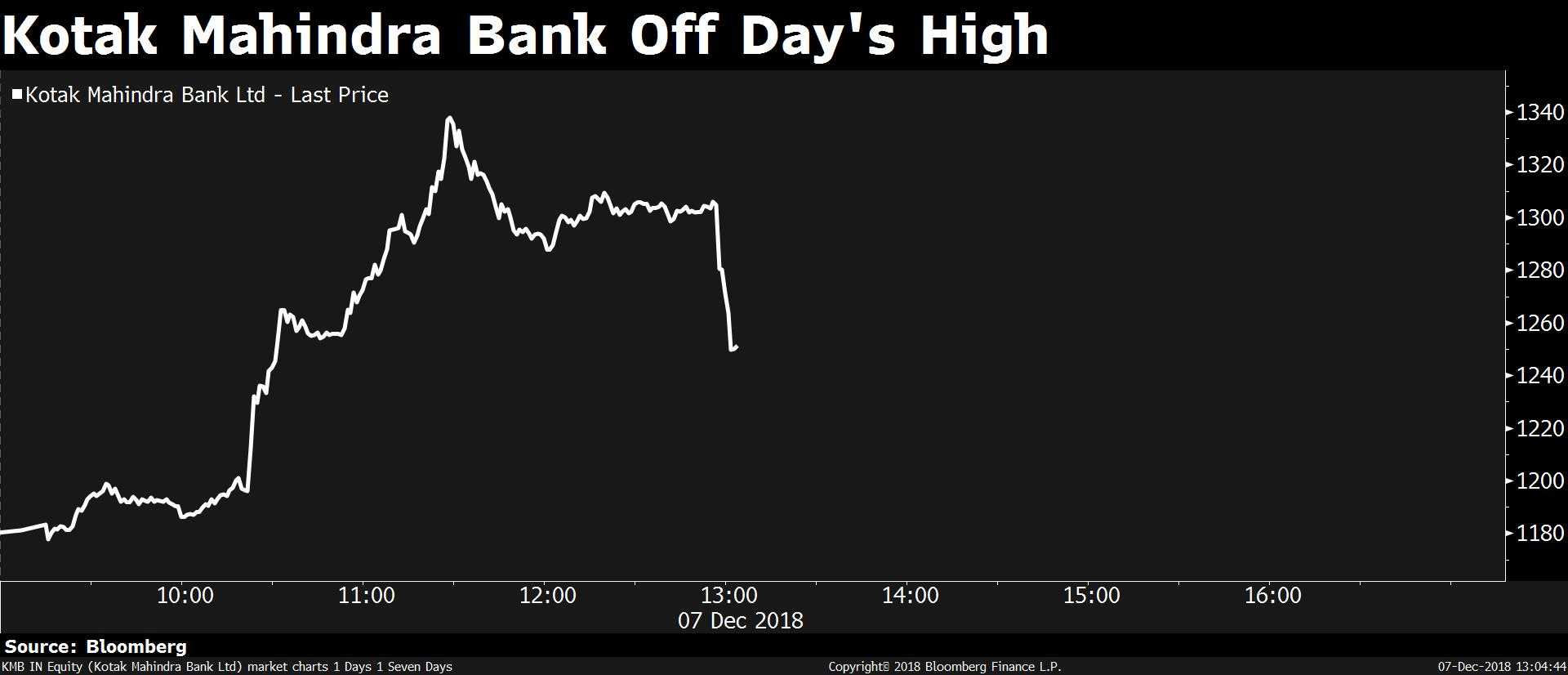 Read: https://t.co/CUJWEhE6yd pic.twitter.com/LNCCq9vA5EKotak Mahindra Bank shares, which had risen as much as 14 percent to Rs 1,345 apiece, pared gains after the clarification.