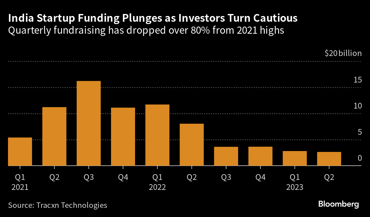 Indian startups raised $5.4 billion in the first half of 2023, a decline of more than 70% from the same period last year, according to Tracxn Technologies. Already in 2022, funding dropped to about $27 billion from $43 billion in 2021.