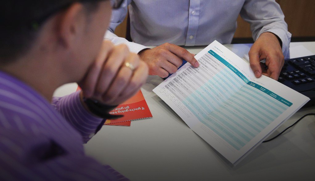 An agent selling insurance products to customers. )Photographer: Brendon Thorne/Bloomberg)