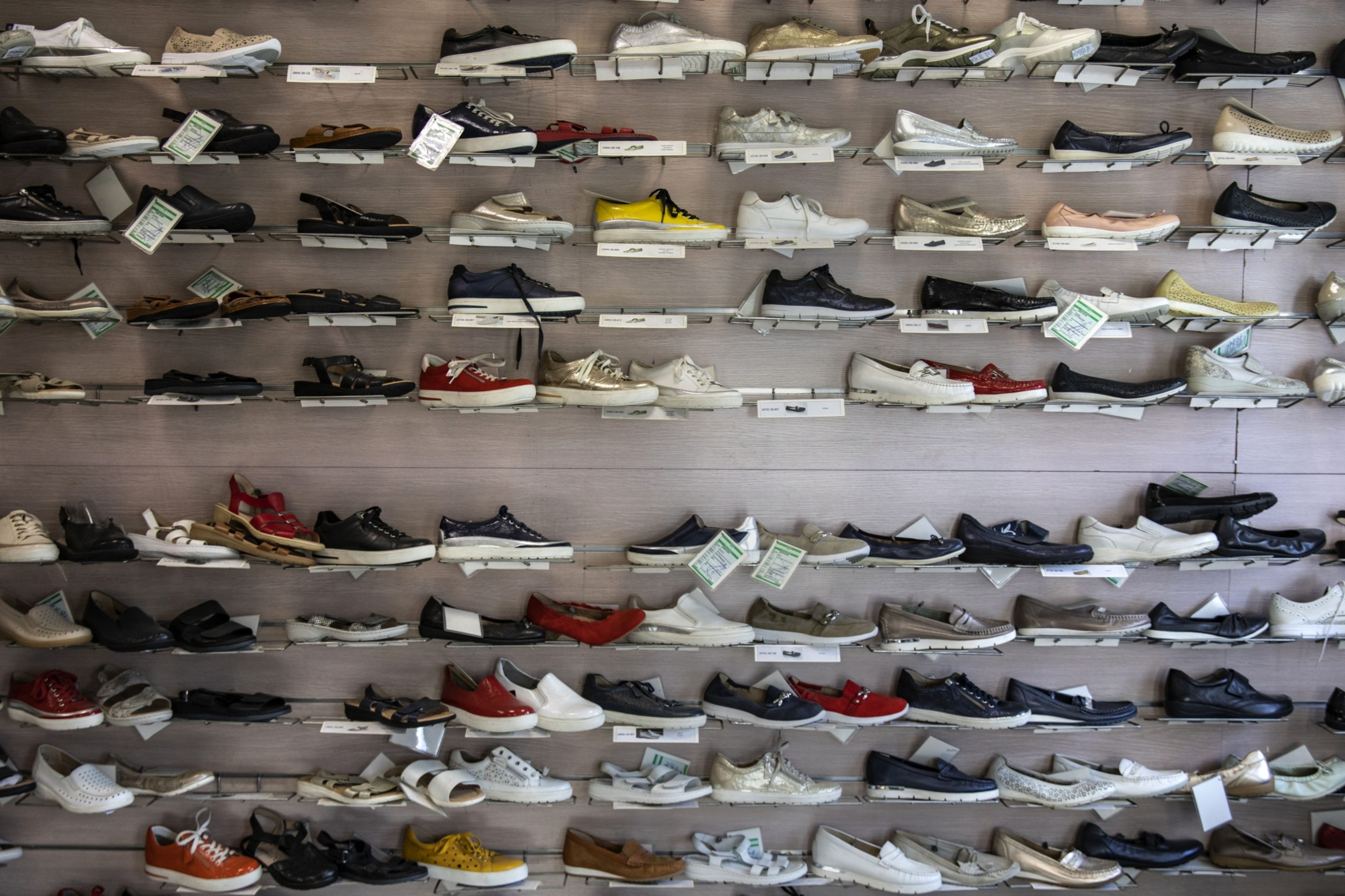 Shoes in a showroom (Photographer: Asad Zaidi/Bloomberg)