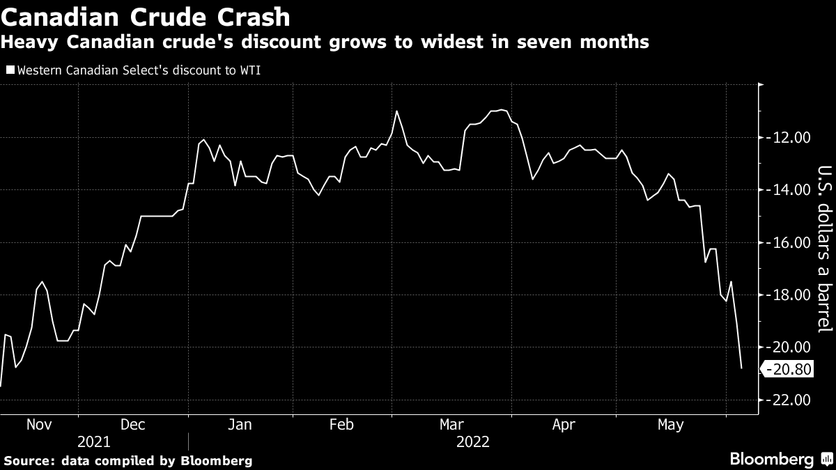 (Bloomberg) -- Canadian heavy crude prices have collapsed as the European war upends global market flows and makes oil sands crude less valuable.