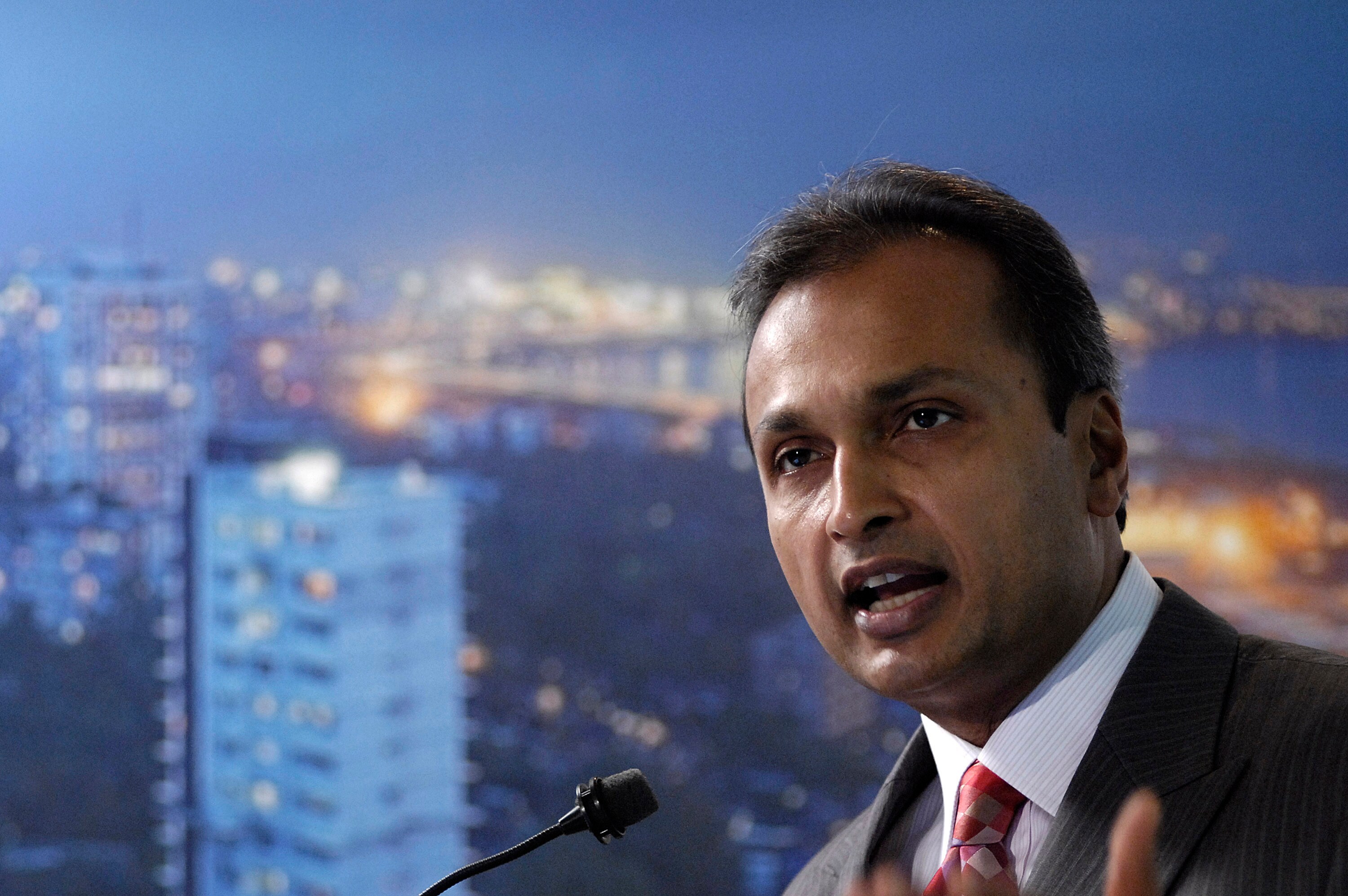 Anil Ambani, chairman of Reliance Communications, speaks during a news conference. (Photographer: Abhijit Bhatlekar/Bloomberg News)