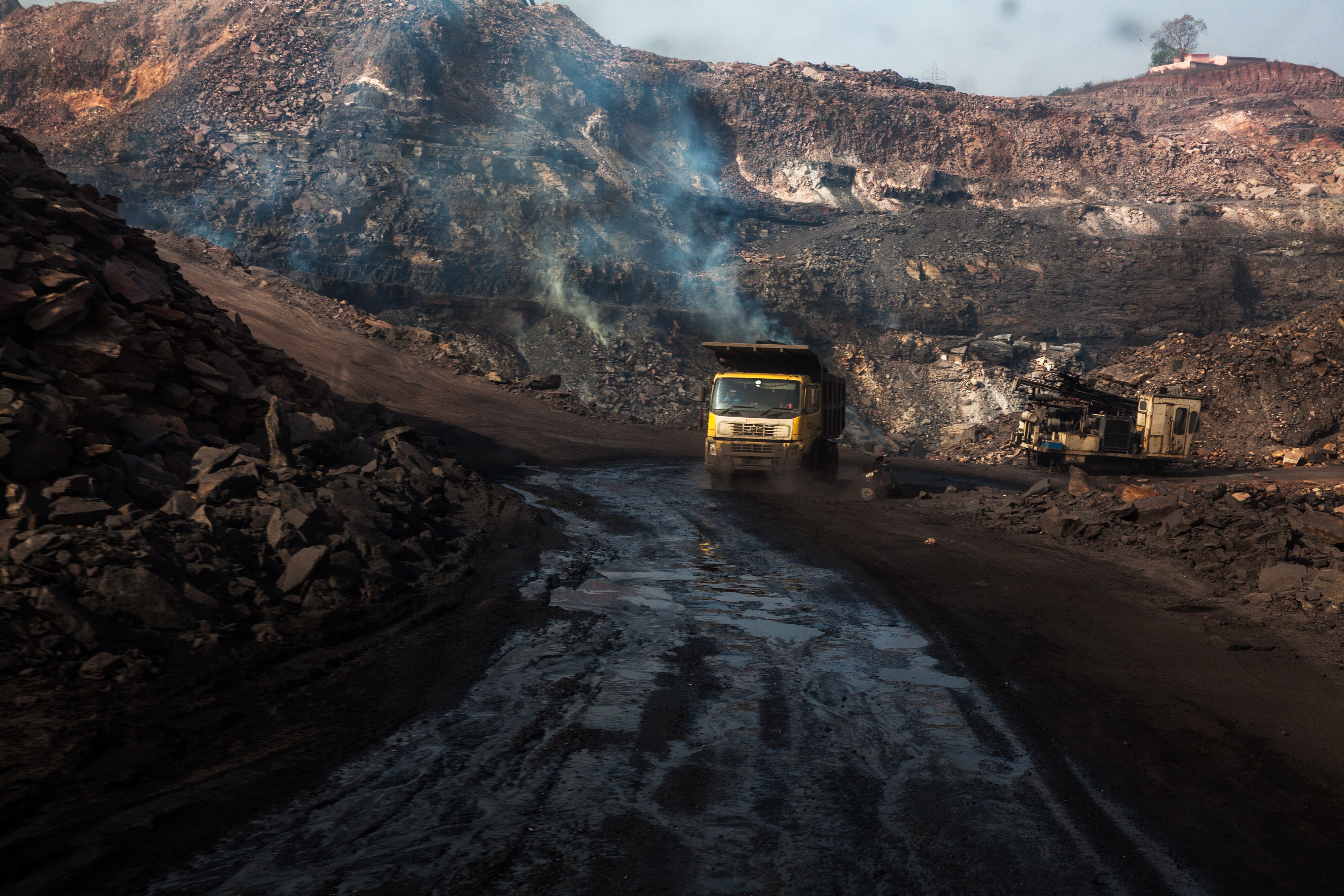 A truck along a road in an open cast mine in Jharia, Jharkhand, India (Photographer: Sanjit Das/Bloomberg)