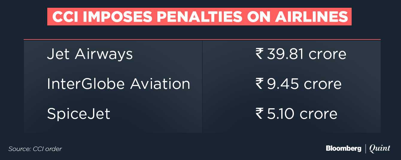 Jet Airways, IndiGo's parent InterGlobe Aviation, SpiceJet were collectively fined a total of Rs 54.36 crore, according to a statement on CCI's website. A cease and desist order has also been issued against the airlines.