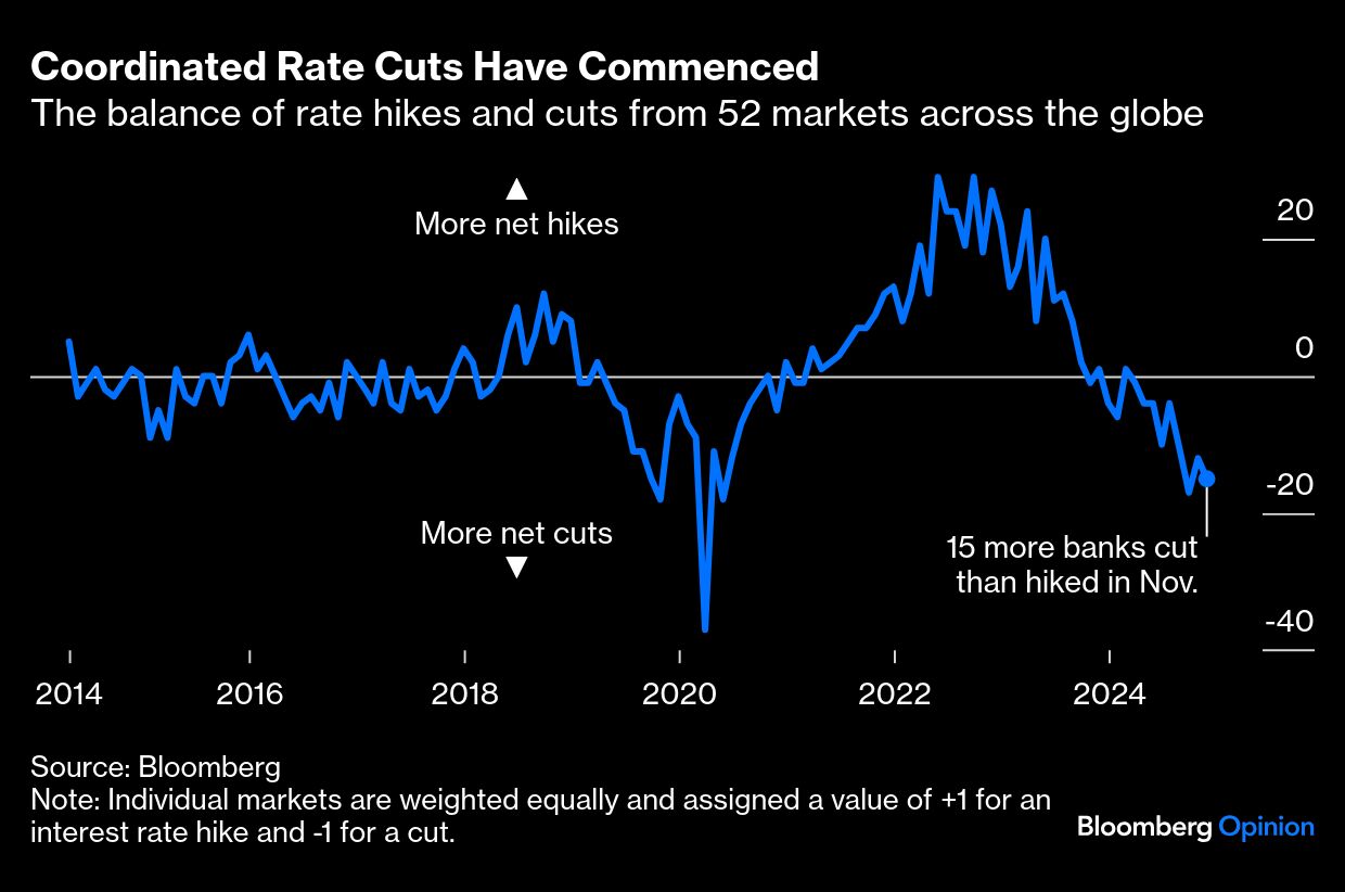 There are other pockets of concern, notably the fiscal issues facing Germany and France, both of which have recently seen their governments fall. The International Monetary Fund's latest World Economic Outlook sees near-term global growth as stable with the balance of risks tilted to the downside. For all the excitement about the US and the hopes that artificial intelligence can spark a new rise in productivity, the descent has been disappointing and continues to be dangerous. But critically, the central bankers did get through the year without a major accident, and tamed inflation somewhat while they did it.