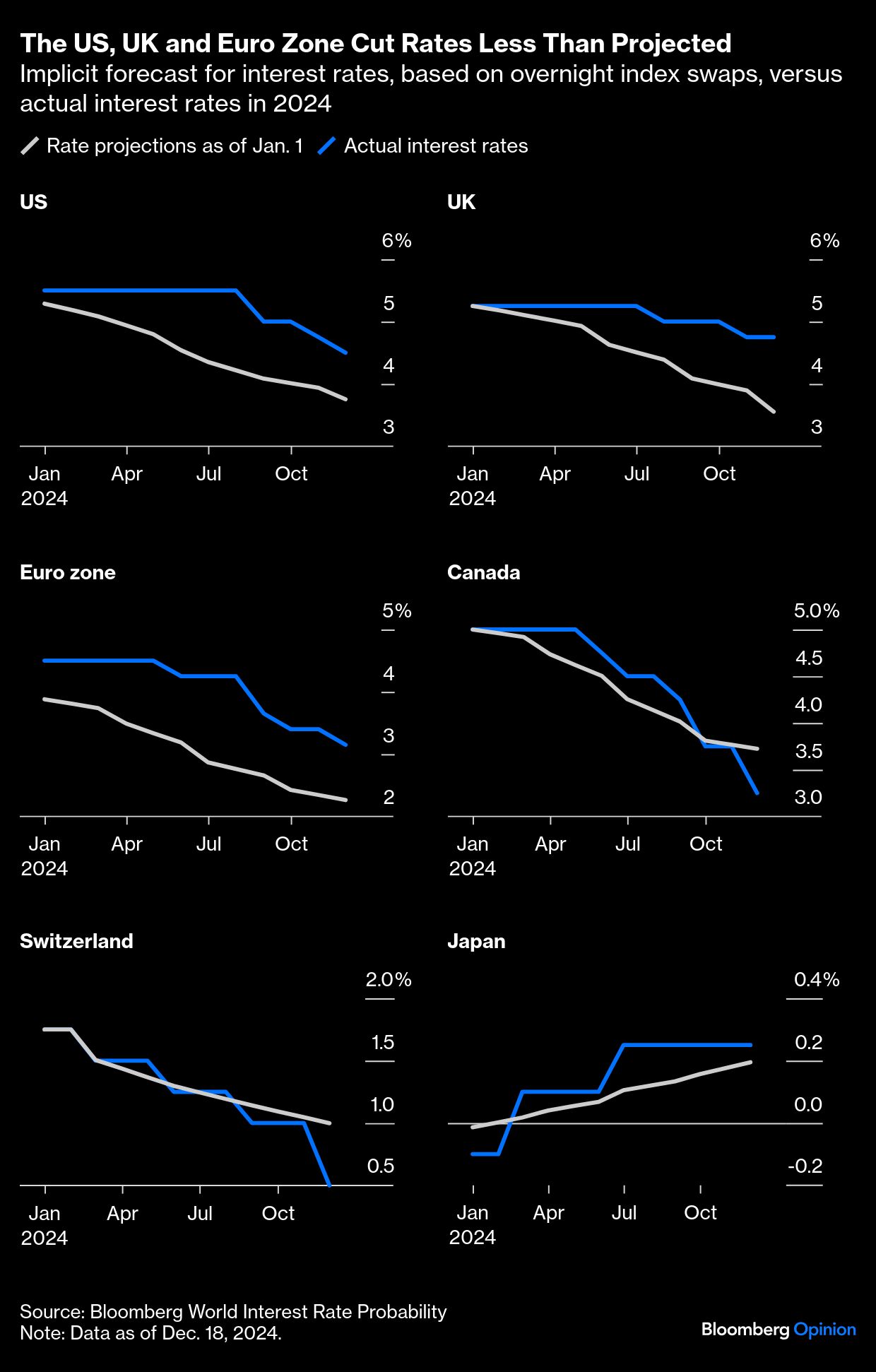 Now, with the task still incomplete, central banks — roped together for safety — must decide how to approach a Donald Trump presidency committed to an economic agenda that seems more likely to raise inflation than reduce it. That is causing big fissures. Canada and Switzerland have cut by more than had been expected this year, while the Bank of Japan — facing very different conditions — has raised rates somewhat more than predicted. The Federal Reserve, Bank of England and the European Central Bank have made far less progress than hoped.