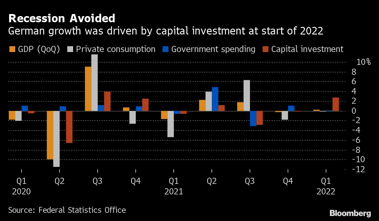 Investments in Germany supported Europe's largest economy in the first quarter, allowing it to cope with the headwinds caused by the pandemic and the war in Ukraine.
