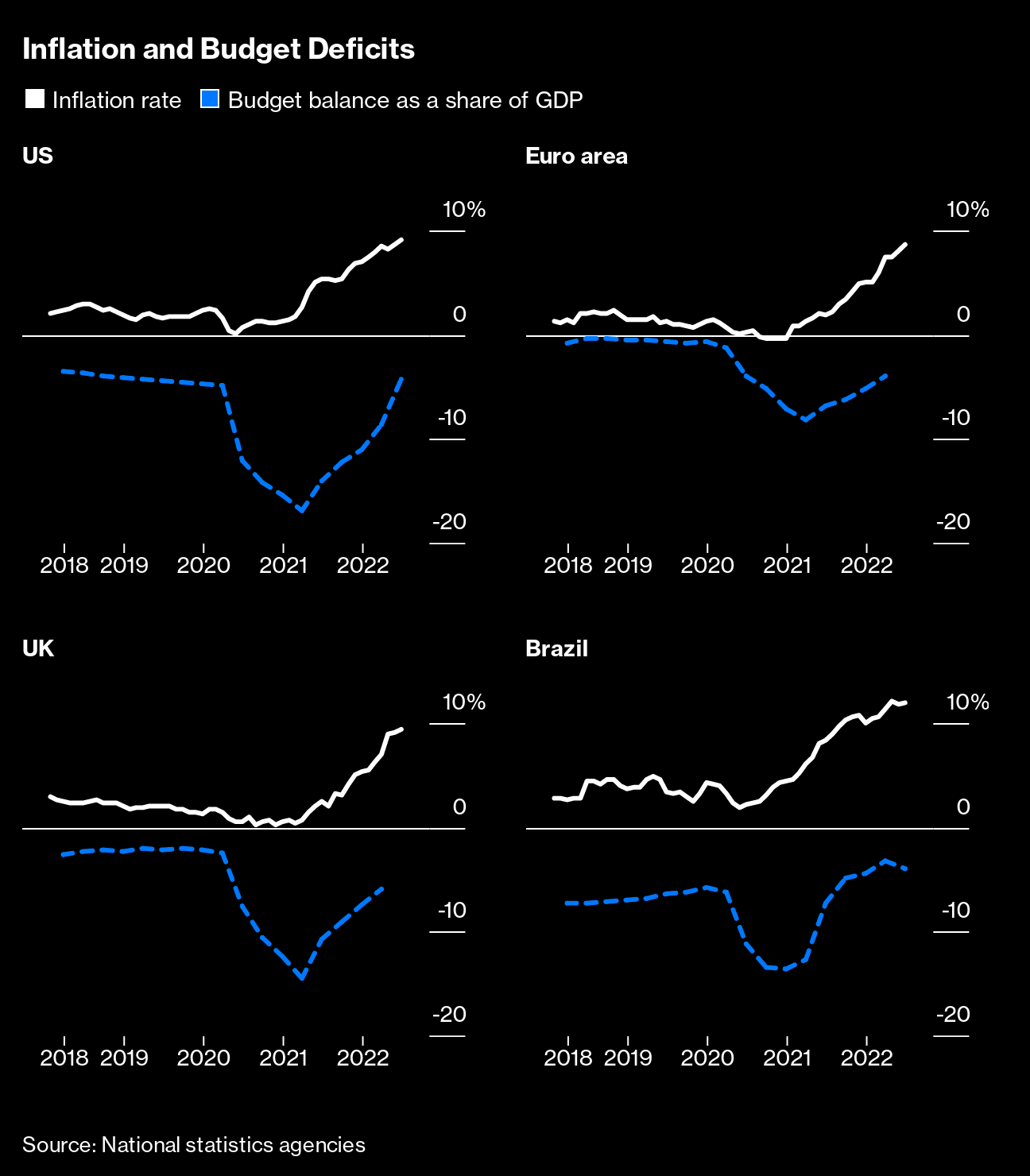 Meantime, global inflation measures remain broadly elevated, with a closely watched gauge in the US rising the most in 40 years on an annual basis and Europe registering another record high.