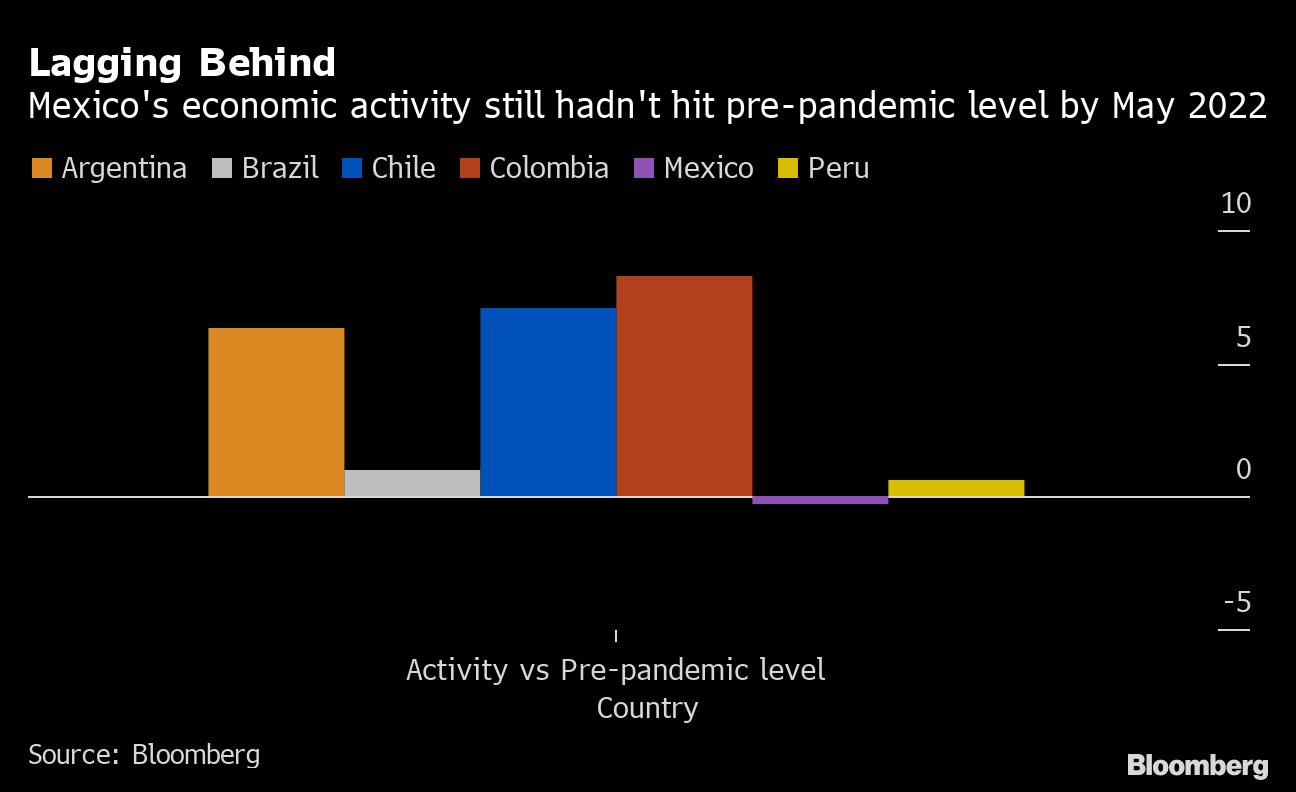Mexico's economic recovery continued in the second quarter, expanding more than expected even as soaring prices hit consumption. The country's growth continues, in part, because it still hasn't recovered to pre-pandemic levels, said Gabriel Casillas, chief Latin America economist at Barclays.