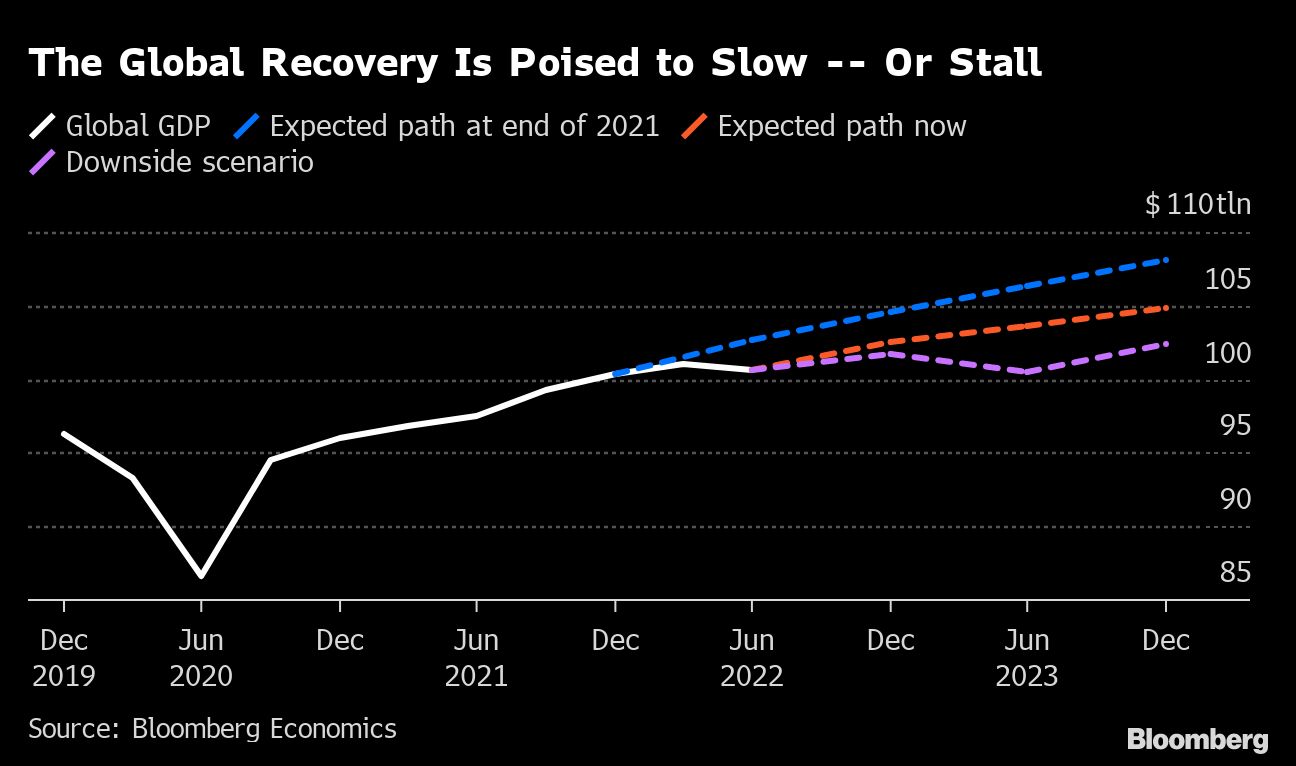 It's been a miserable year for the global economy. But things can always get worse. An extreme downside scenario could wipe out some $5 trillion in global output, compared with more upbeat forecasts at the start of this year, according to Bloomberg Economics.