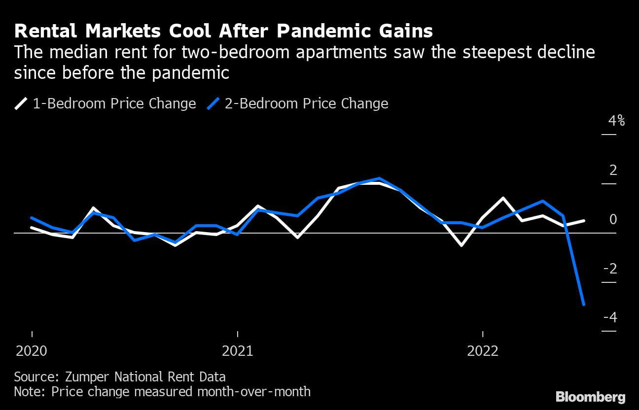 The decline in prices for two-bedrooms is the “most significant drop we've seen since pre-pandemic times,” according to Crystal Chen, a  spokeswoman for Zumper. “Renters are sending a clear message to property owners that they're not able to pay sky-high rents, and they anticipate a recession.”