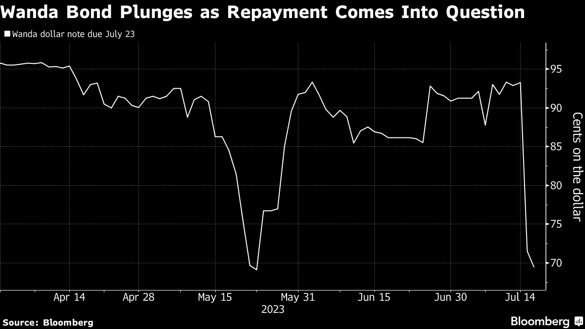 If Wanda were to not repay the July 23 note, it would “be another nail in the coffin for Chinese high-yield property bonds,” said Charles Macgregor, head of Asia at Lucror Analytics. He said very few investors are willing to increase holdings, exemplified by most of major builder Country Garden Holdings Co.'s dollar notes now trading in the 20s and 30s.