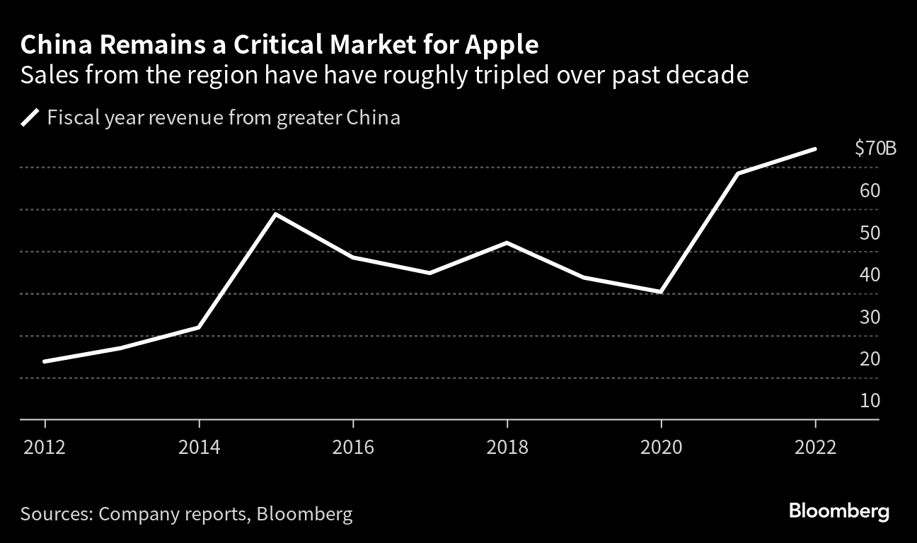 Even with US-China ties fraying, Apple remains highly dependent on the Asian country — both as a manufacturing partner and a market for its products. Chief Executive Officer Tim Cook celebrated that relationship during a trip to China earlier this year, calling it “symbiotic.”