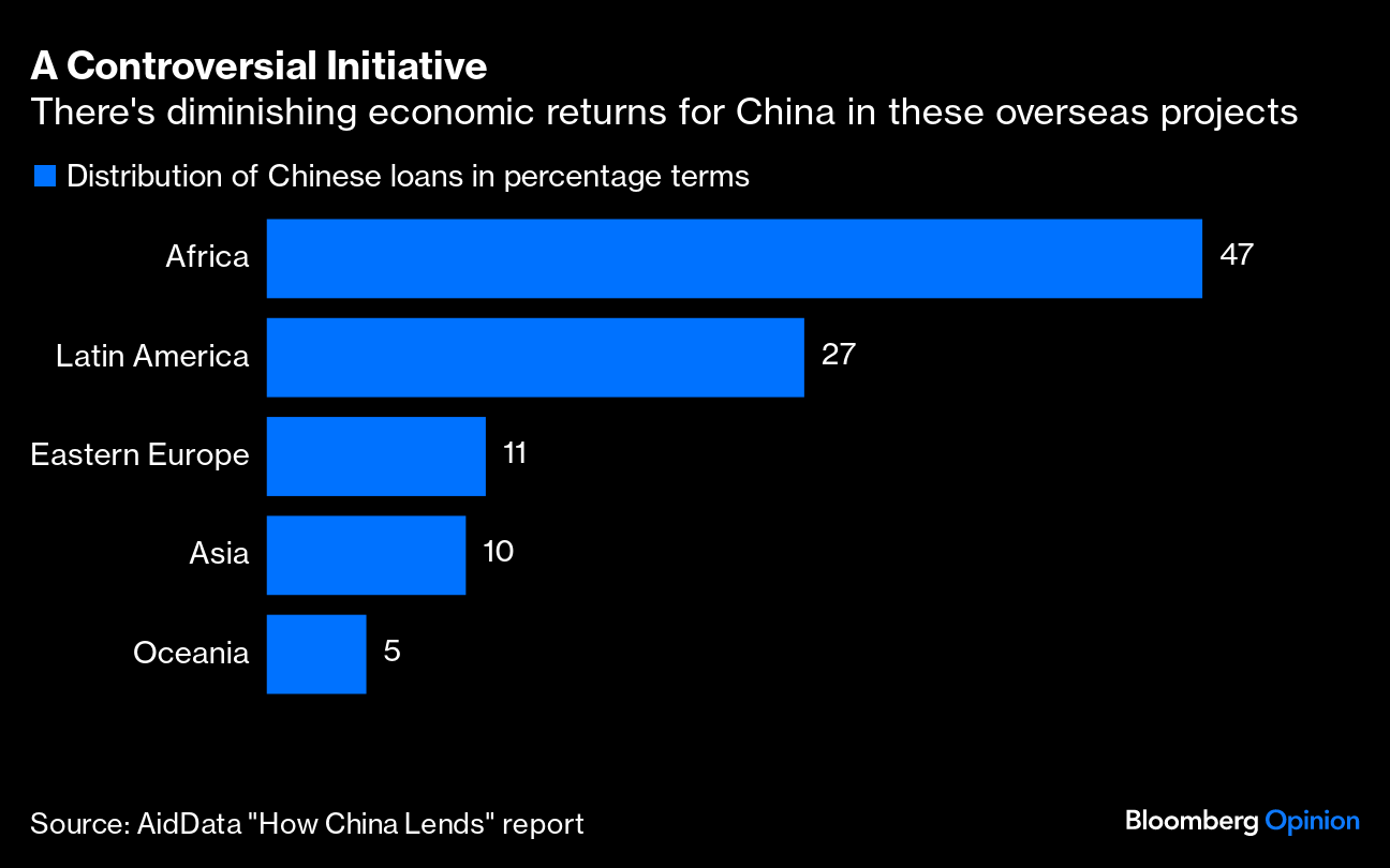 Don't expect any of this negative sentiment to overshadow the 10-year celebrations when Xi addresses his dignitaries and guests later this month. Instead, there will be the necessary congratulatory cheering over cake, cocktails and champagne. No matter how grand the event, it will be hard to ignore that Chinese funds for overseas investment have been drying up since 2018, and the focus on big infrastructure projects is unlikely to return. Beijing's Belt and Road Initiative era is by no means over, but it will have to find new ways to thrive.