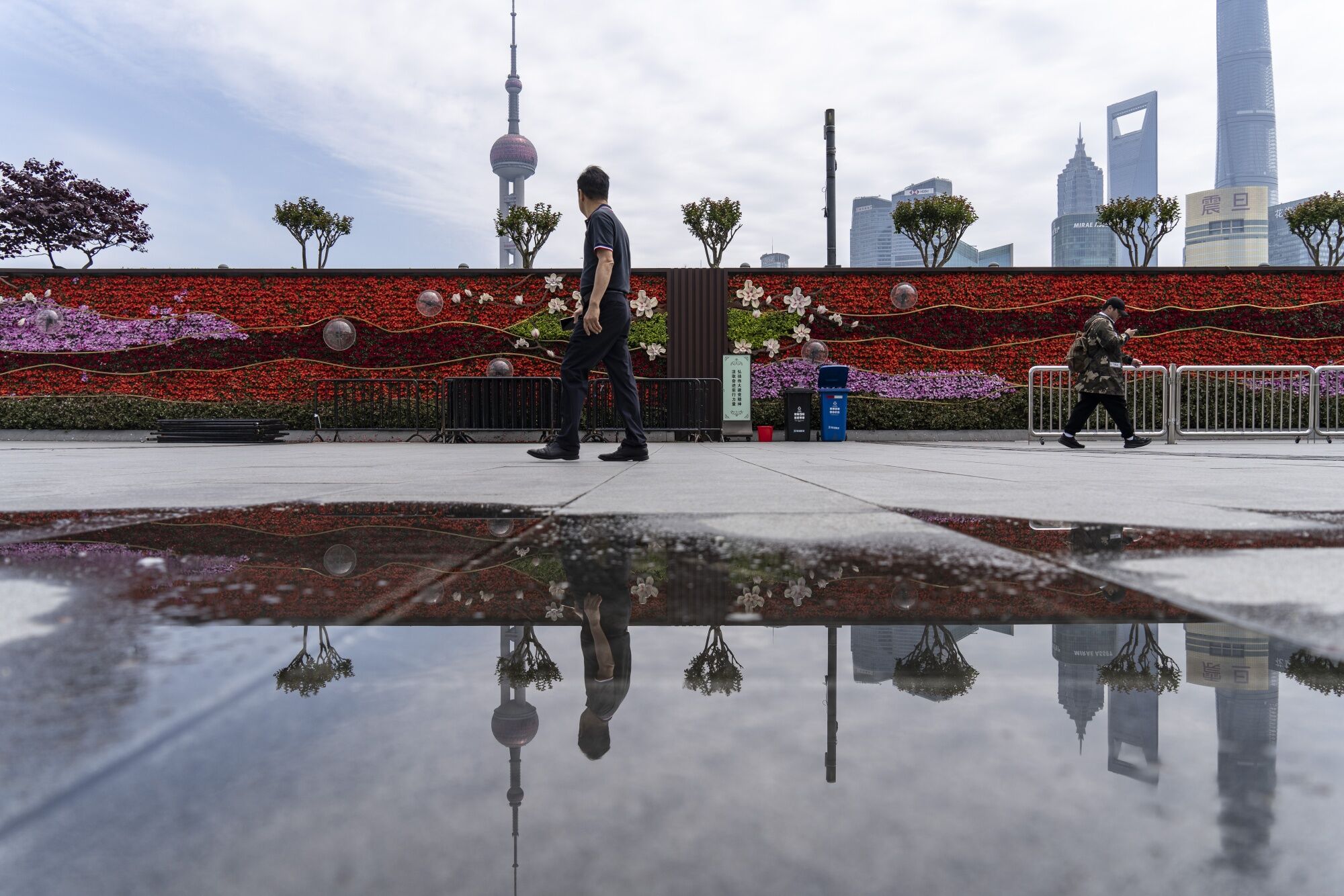 Visitors in the Bund in front of buildings in Pudong's Lujiazui Financial District in Shanghai, Photographer: Qilai Shen/Bloomberg