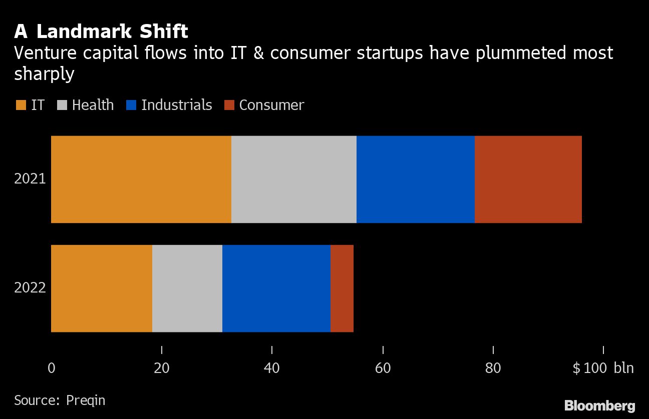 The value of venture capital deals in the country tumbled 44% to $62.1 billion through October, compared with the same period in 2021, according to research firm Preqin. China once rivaled the US for capital invested in startups, before Xi Jinping's administration embarked on sweeping efforts to reform the practices of giants like Alibaba Group Holding Ltd. and Tencent Holdings Ltd.