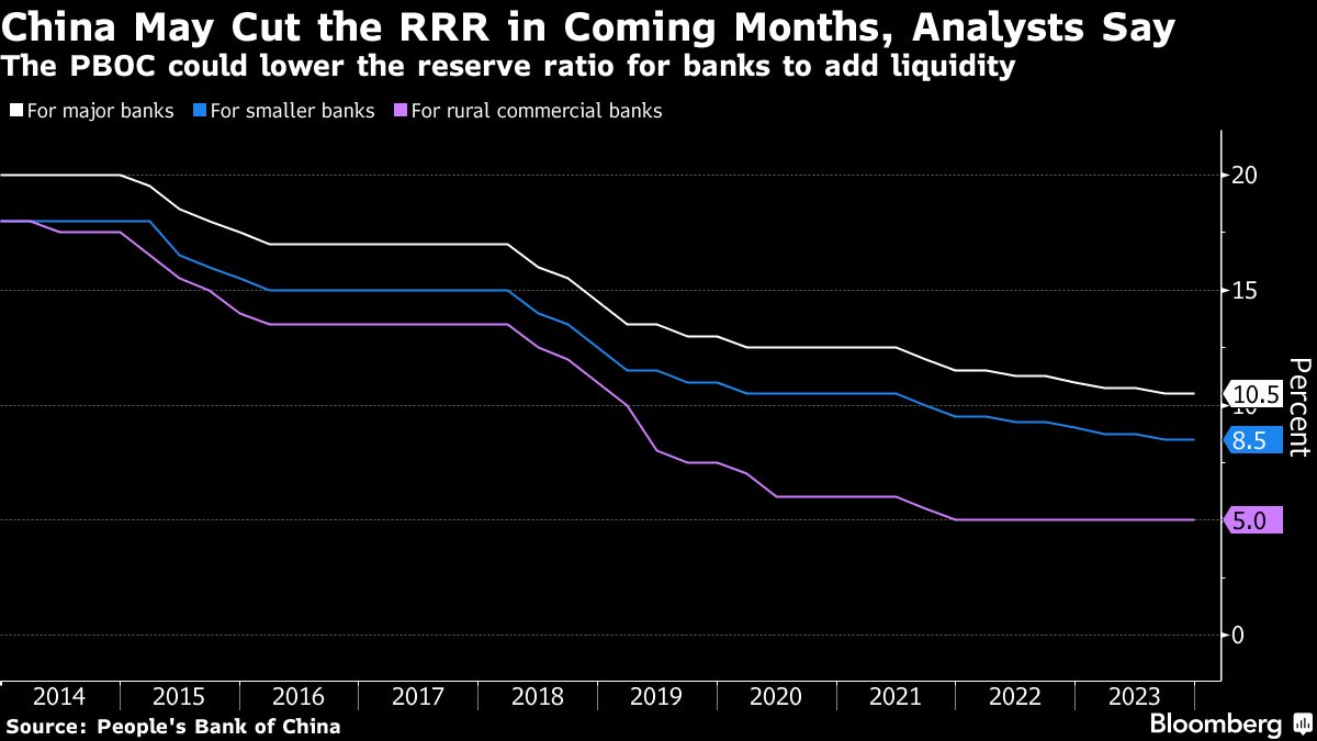 Analysts expect a bevy of actions by the central bank in the next few months to ease policy. That includes an anticipated cut to the reserve requirement ratio — the amount of cash lenders have to keep in reserve — to help banks buy up a surge in government bonds. The PBOC may also cut policy rates early next year, economists predict.