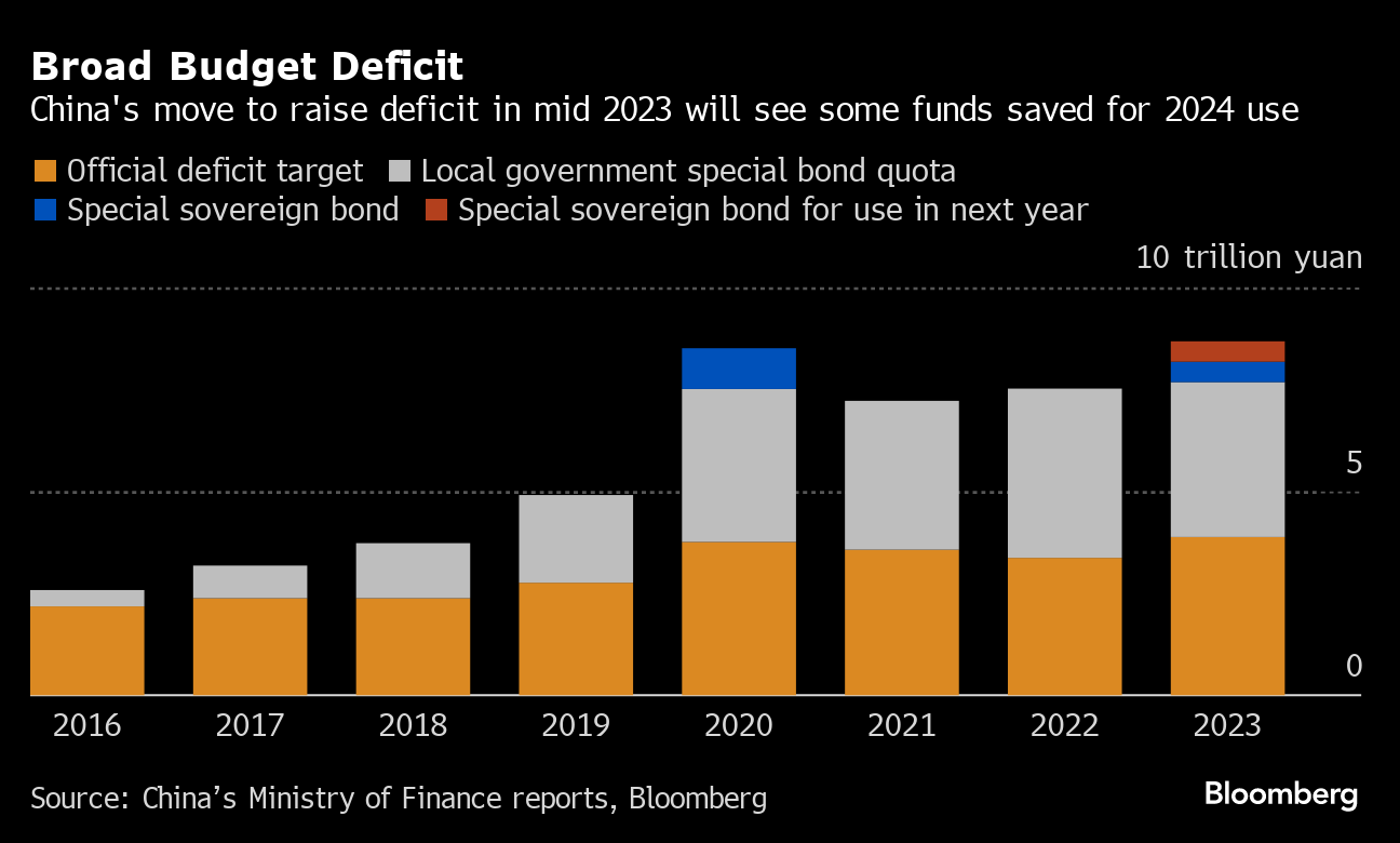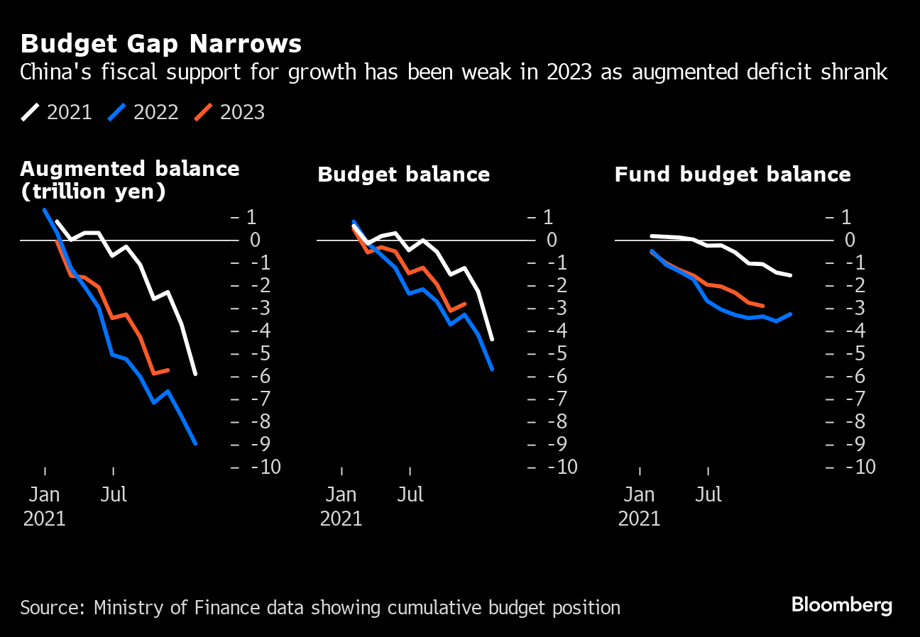 Authorities have been stepping up fiscal stimulus in recent months by leveraging up the central government, giving debt-laden local authorities some respite. That's a strategy economists expect to continue into 2024 as the government works to rebuild confidence.
