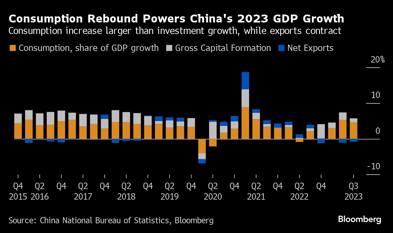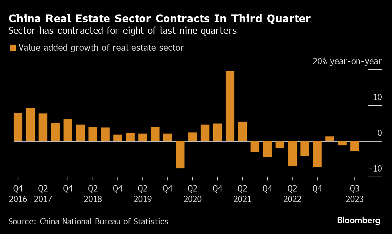 (Bloomberg) -- China's latest economic data put the government's growth goal of about 5% well within reach and lessened the likelihood for more stimulus before the end of 2023. But the ongoing housing crisis remains a serious drag, worsening the outlook heading into next year.