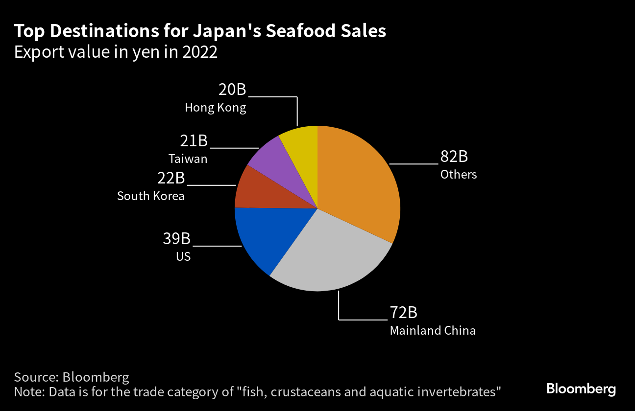 Hong Kong's Michelin-starred Godenya previously said it would seek alternative suppliers for key ingredients sourced from Japan, and new trade curbs will threaten to crimp sales for Japan's major seafood producers. Maruha Nichiro Corp. wins about 5% of revenue from destinations in Asia outside its domestic market, according to data compiled by Bloomberg, while Nishimoto Co. generates around 8% of sales outside of Japan, North American and Europe.