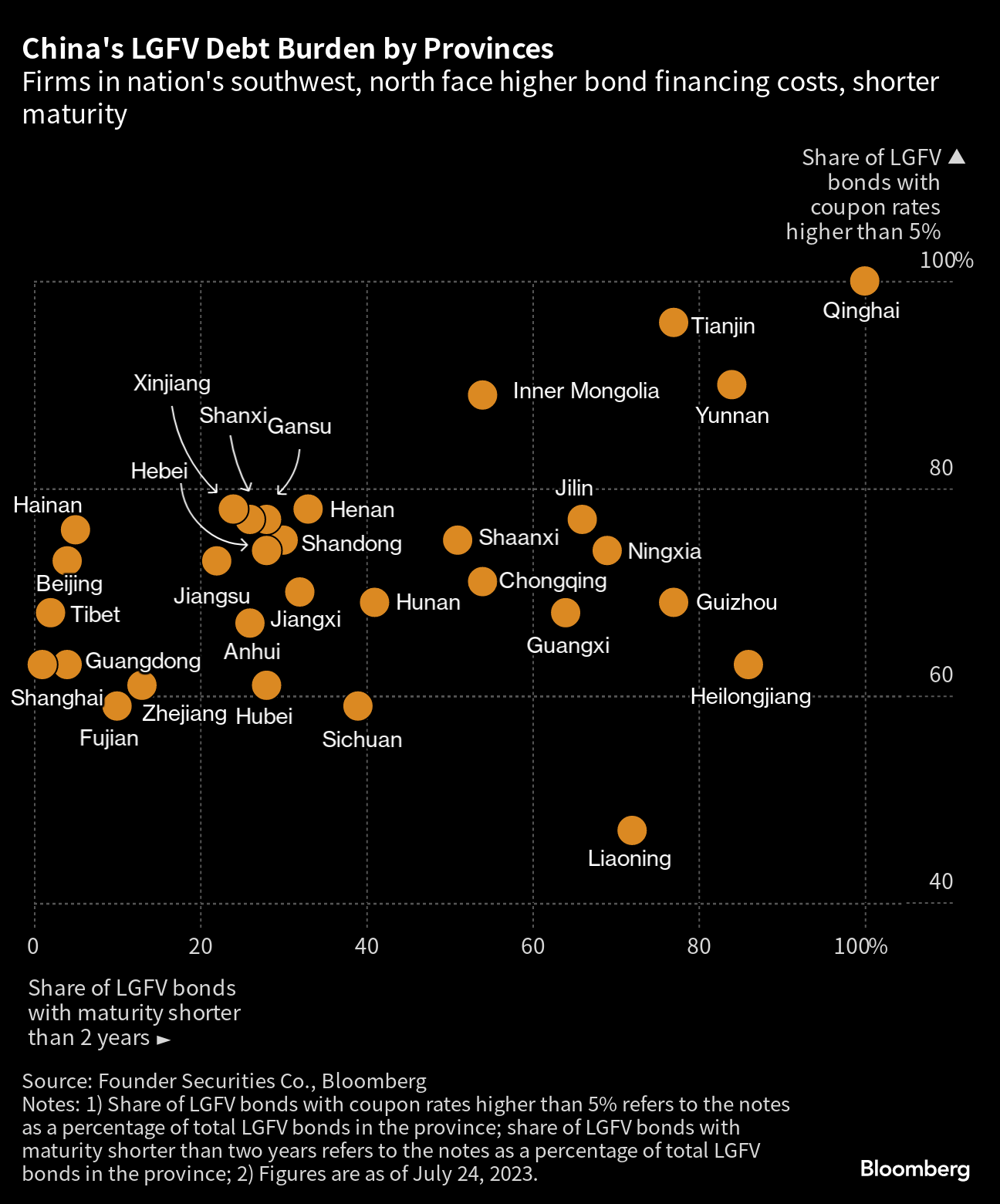 All provincial-level governments but Beijing, Shanghai, Guangdong and Tibet will be able to use the bonds to repay off-balance sheet liabilities, known as “hidden” debt in China, according to one of the people. Authorities also identified 12 provinces and cities as “high-risk” areas where more support will be provided — including the provinces of Guizhou, Hunan, Jilin and Anhui, as well as Tianjin city, one person said.