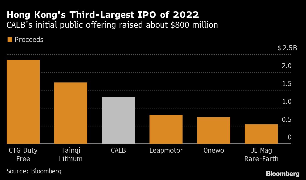 Even at a smaller size than initially expected, CALB is the third-largest IPO in Hong Kong this year, as mid-to-large sized deals return after a slow first half. Still, funds raised in the city are down about 75% since the start of January as rising interest rates roil markets and keep issuers on the sidelines.