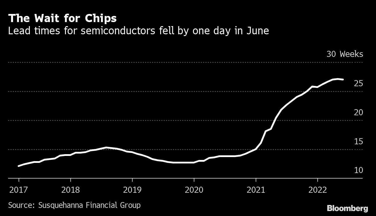 The average wait times for semiconductors soared to 27 weeks in June, with companies from Toyota Motor Corp. to Apple Inc. losing out on billions of dollars in sales because they couldn't get enough chips. Before the pandemic, average lead times were typically less than 15 weeks.