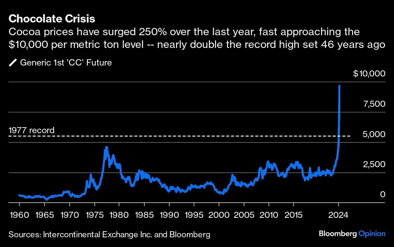 Once prices become untethered from fundamentals, a bull market is almost impossible to stop — until something breaks. Brace for the current surge in cocoa to have wider ramifications than inflating the cost of your Easter egg.