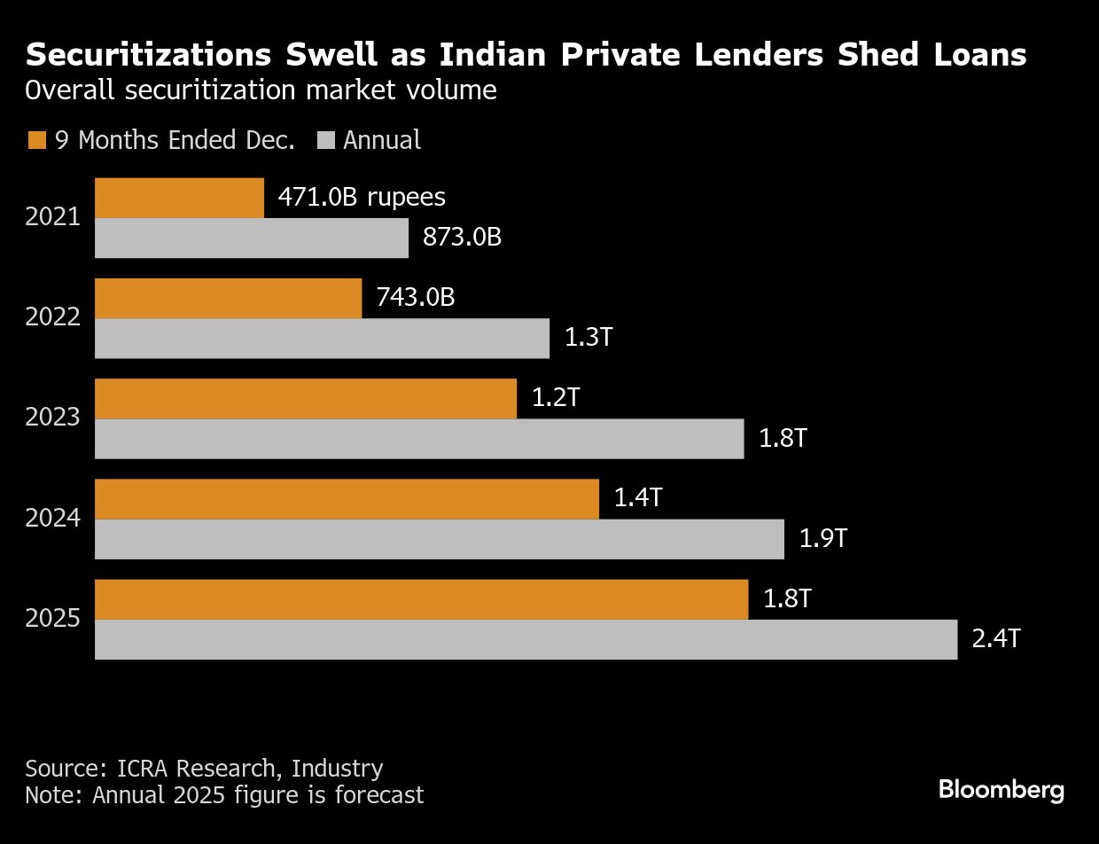 The bank plans to buy asset-backed securities linked to retail loans, increasing its book by three-fold to over $1 billion by the end of the fiscal year, said Aditya Bagree, managing director and head of markets at Citi India. Citi expects close to $30 billion in the country's total securitization volume in the fiscal year ending March 31, 2026.