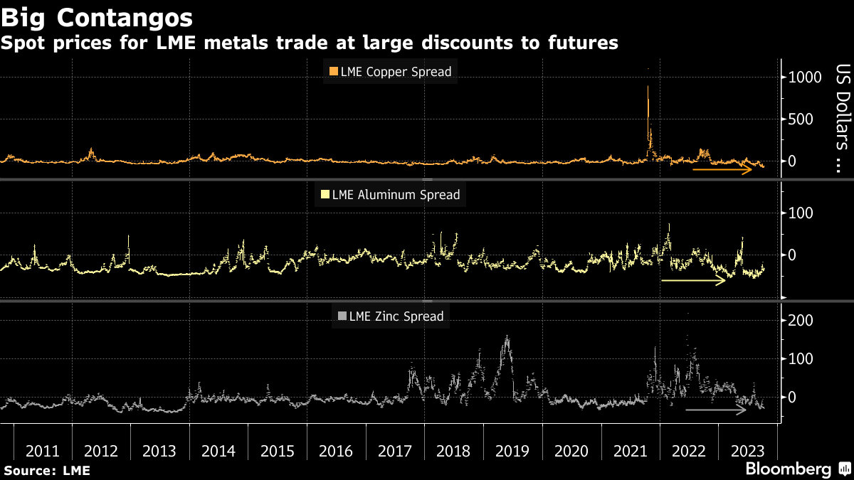 Aluminum prices in August traded at the widest contango in 15 years, copper has in recent days slid to the widest contango in over two decades, while the zinc market is close to its widest contango in a decade.