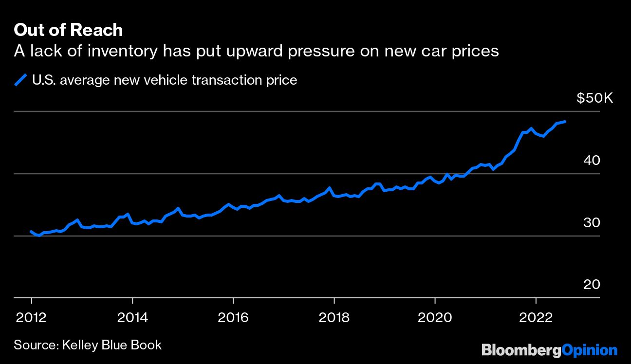 High prices are socially regressive and imperil a recovery in auto sales following the pandemic, while undermining the energy transition. Even beneficiaries of this trend, like Tesla Inc.'s Elon Musk, acknowledge sticker prices have reached “embarrassing levels.” I'd add potentially also levels for the industry.