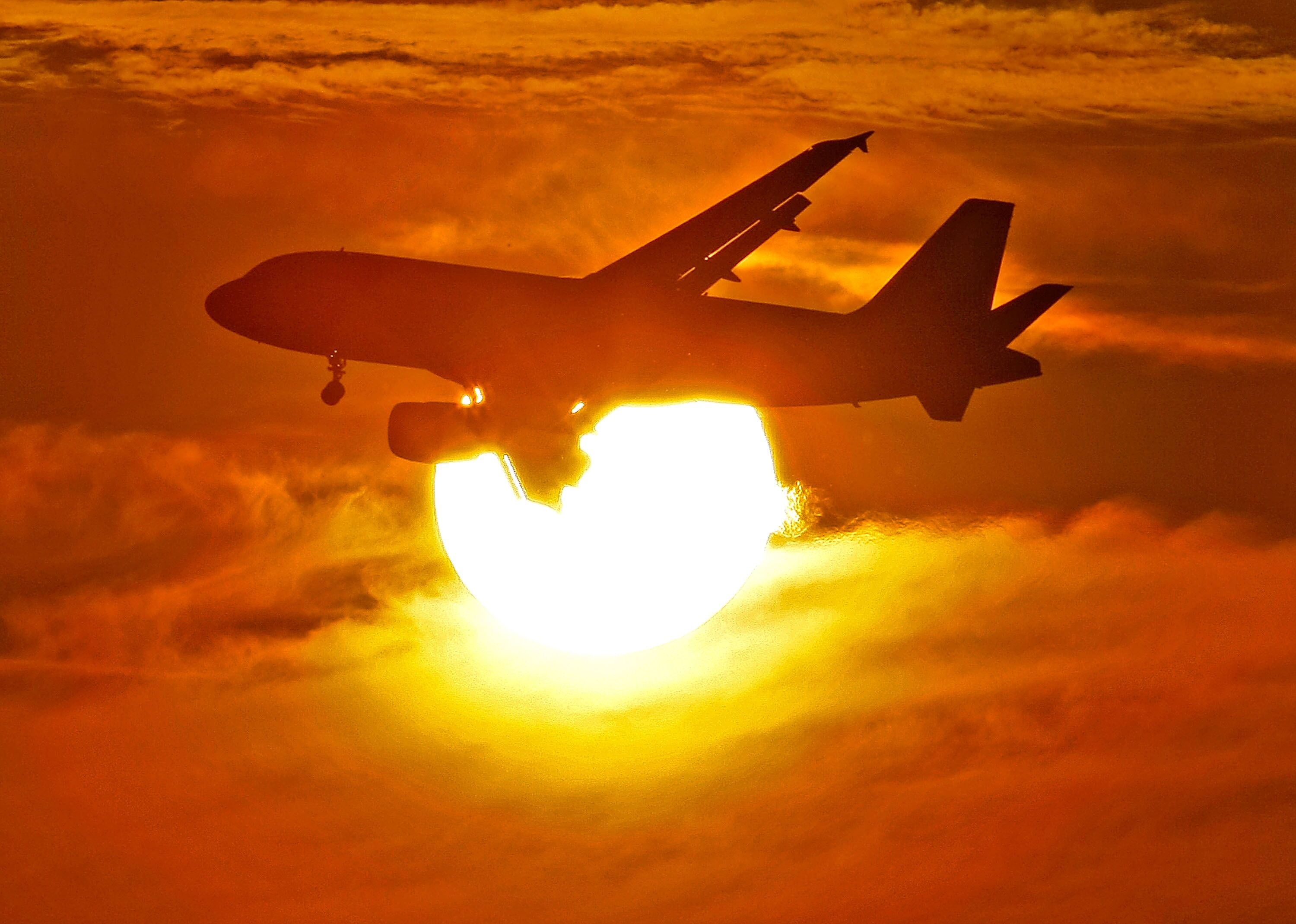 A commercial airliner passes in front of the setting sun on its approach to Reagan National Airport in Washington. (Photo by Mark Wilson/Getty Images)