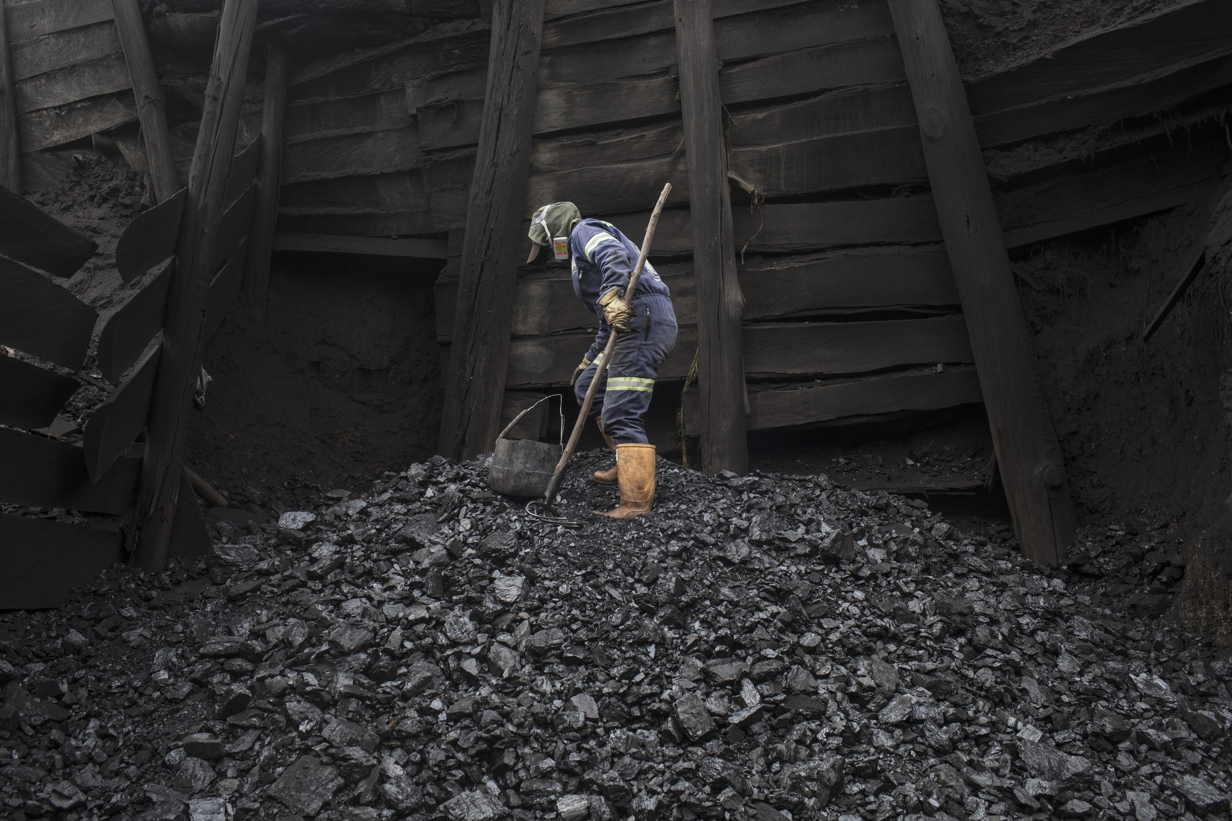 A miner manually culls rocks and stones from coal. Photographer: Nicolo Filippo Rosso/Bloomberg