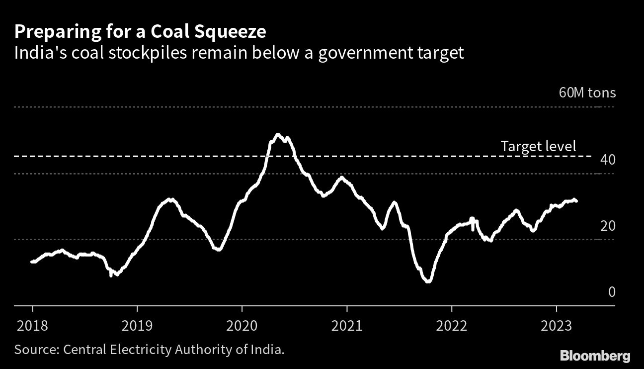 (Bloomberg) -- Coal India Ltd., which accounts for about four-fifths of the nation's output of the fuel, is aiming to boost supplies to power plants this summer as unusually hot weather drives electricity demand.