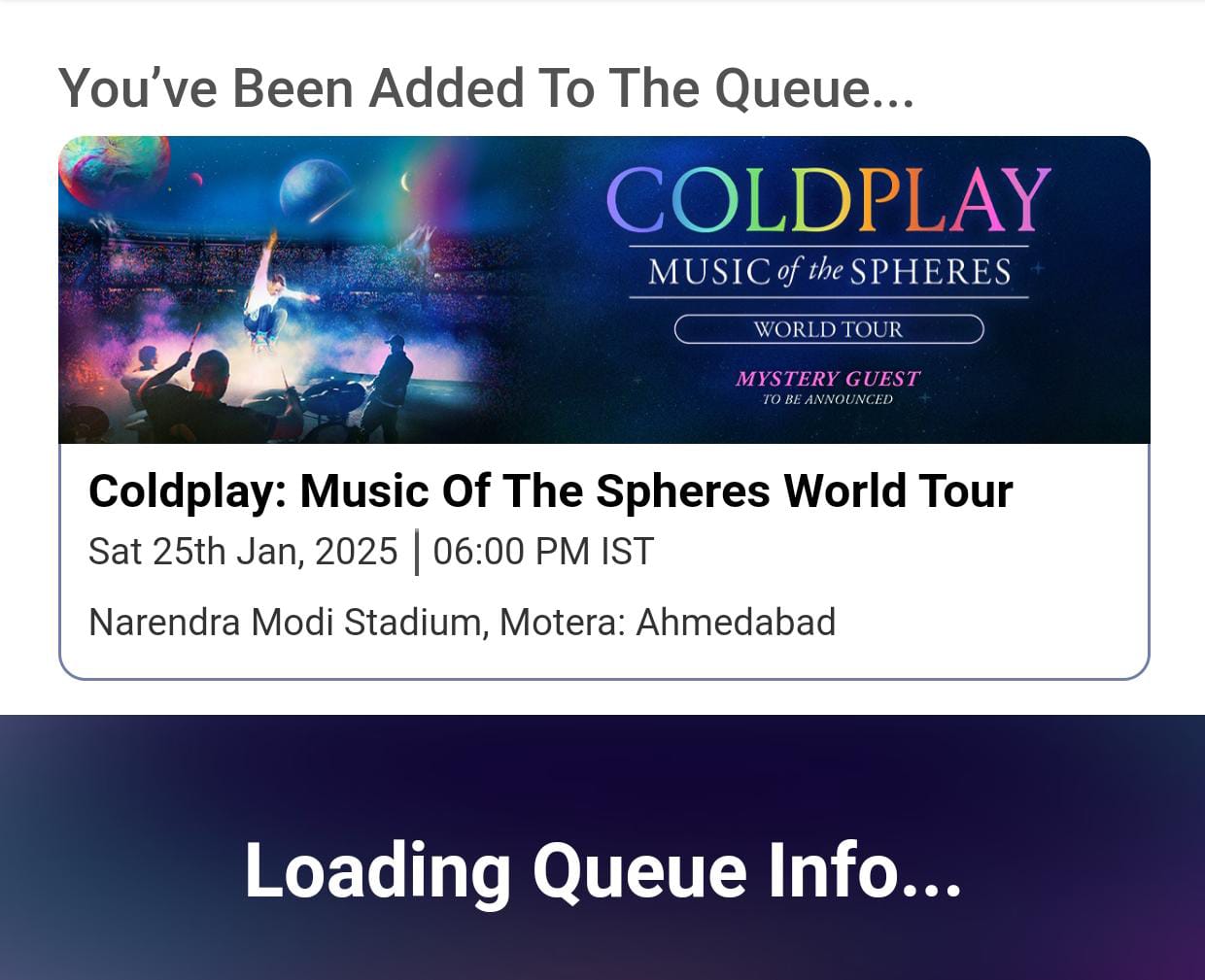 As of 12.39 pm, while most of the tickets remain sold out on the offical ticket booking partner's platform, 1-2% of tickets for the Coldplay Ahmedabad concert remain available across different price changes.