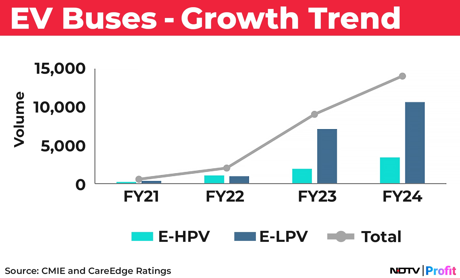 Between fiscal 2021 and fiscal 2024, the electric vehicle segment saw significant growth in commercial vehicles, especially e-buses and light commercial vehicles. Increased adoption rates, expanding EV infrastructure, and lower operational costs attracted fleet operators, it said.